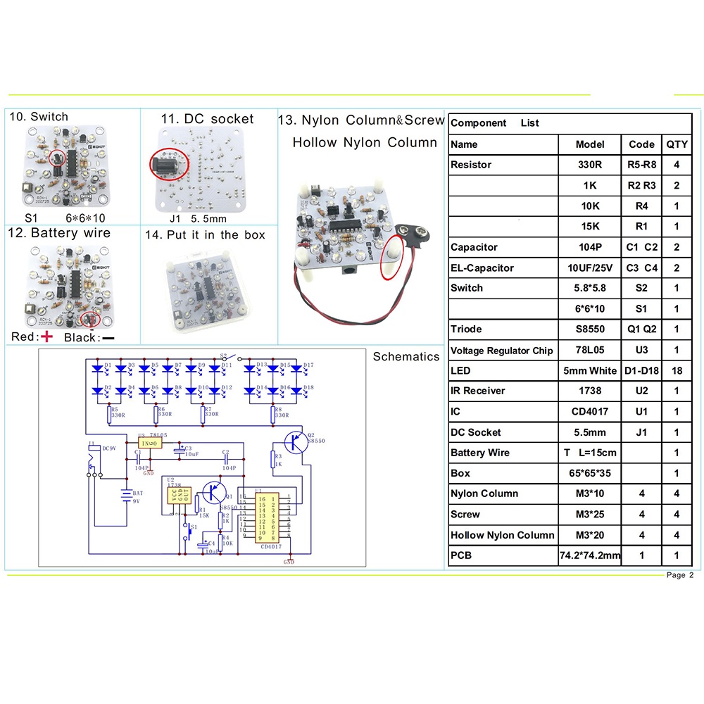 Pcbfun Dc9-12V Night-Light Led Lamp Diy Kit Remote Control Electronics Welding Practice
