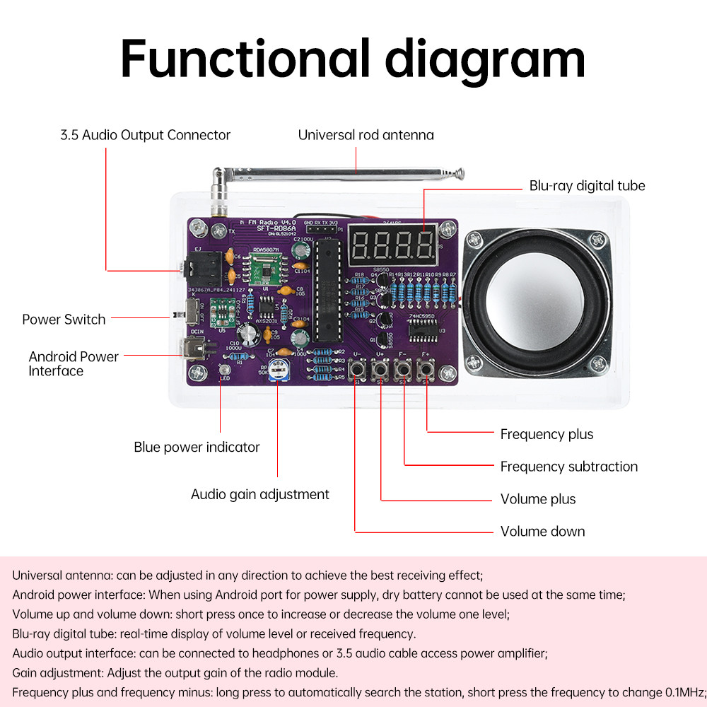 Pcbfun Digital Tube Display FM Radio Electronic DIY Kit Microcontroller Learning Assembly Bulk 87.5MHz~108MHZ