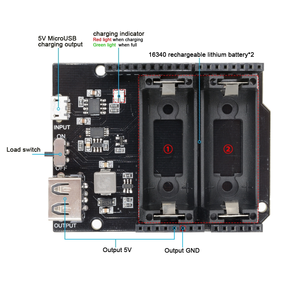 Pcbfun Esp8266 Esp32 16340 Battery Expansion Board Shield Power Bank Supply Module For Arduino R3