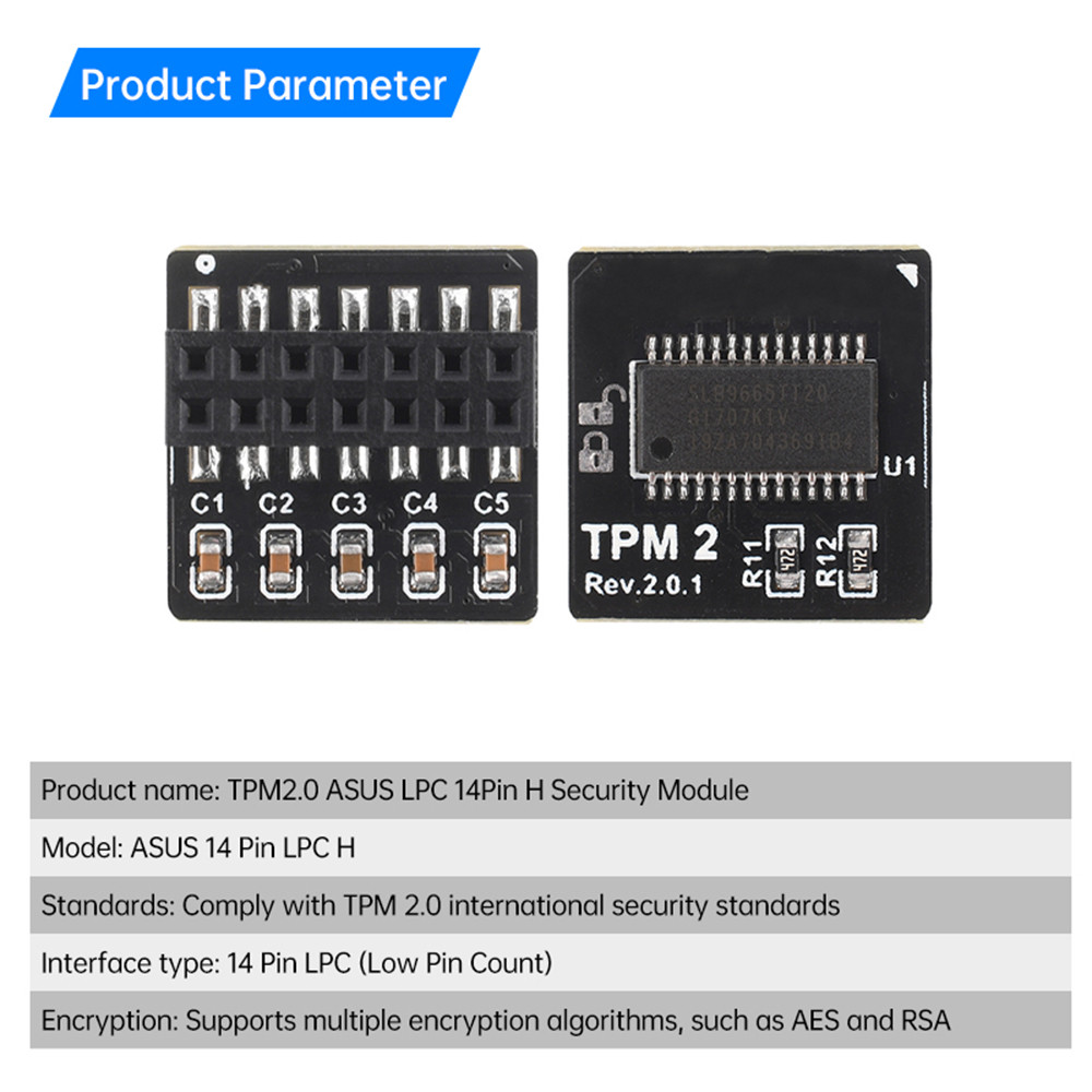 Pcbfun TPM2.0 Security Module 14 Pin LPC H Trusted Platform Module Data Encryption Standalone Encryption Chip