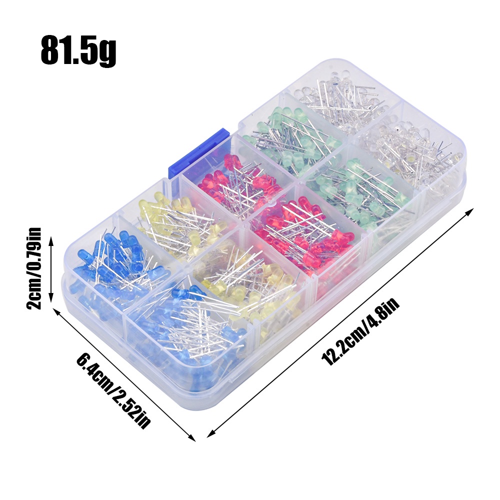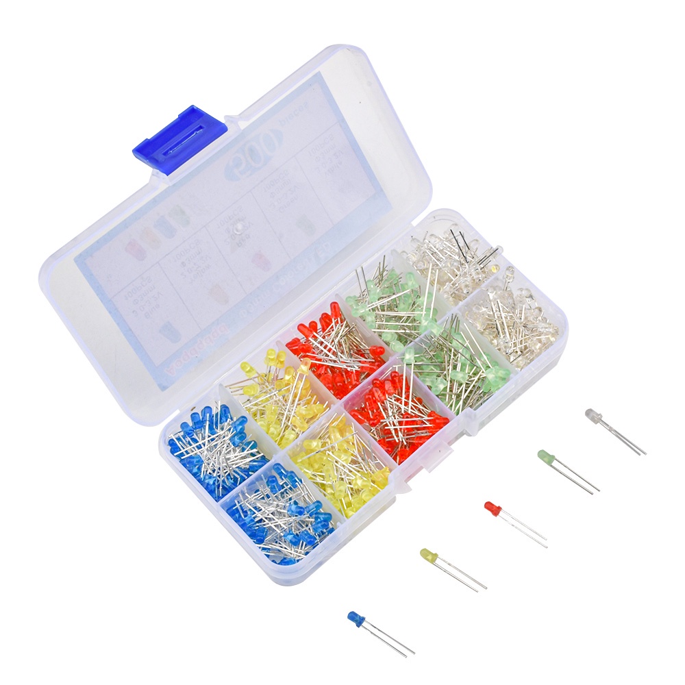 Pcbfun Transistor 500Pcs 3Mm Led Light-Emitting Diode Box 100Pcs Per Color