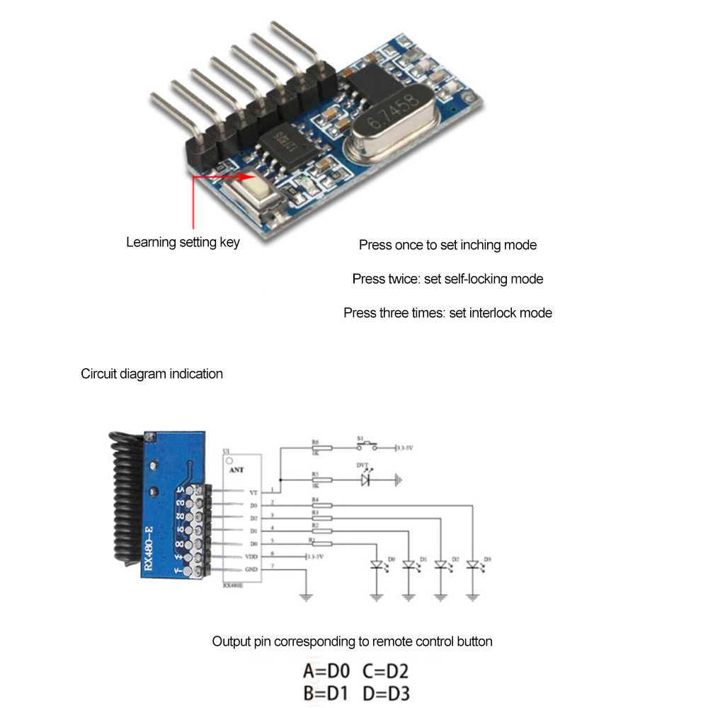 Pcbfun Wireless 433Mhz RF Module Receiver and Transmitter Remote Control Receiver Module