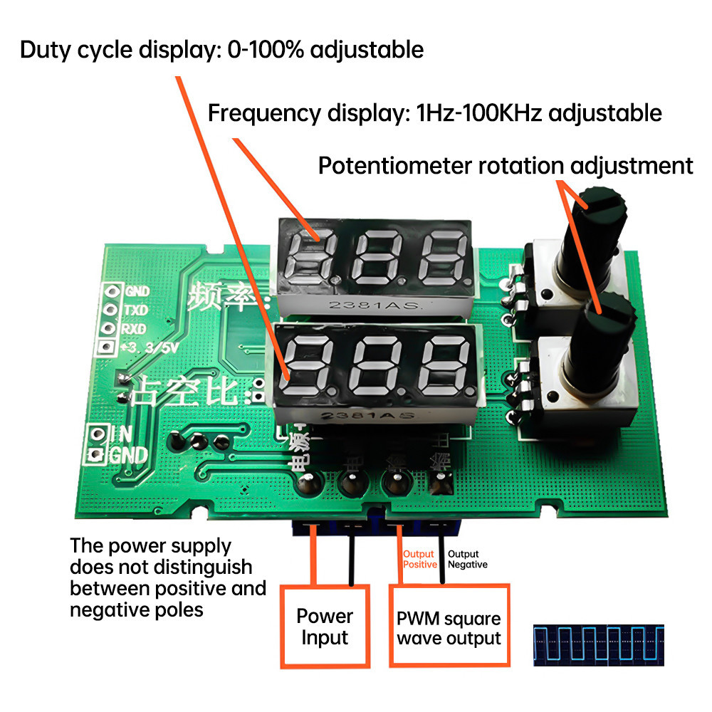Pcbfun YF-6 PWM Square Wave Rectangular Wave Signal Generator Driver Module Pulse Frequency Duty Cycle Adjustable DC Frequency Tester 1HZ~100KHZ