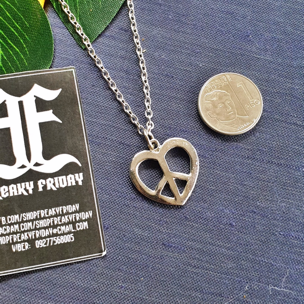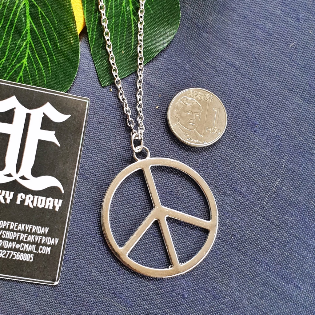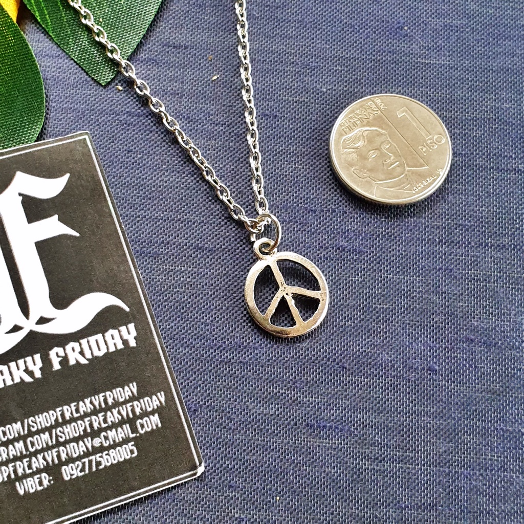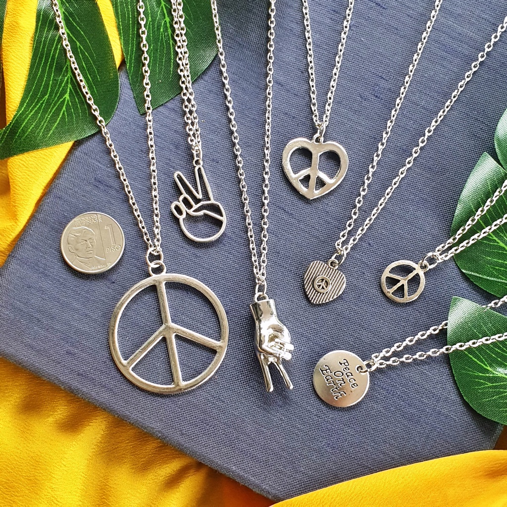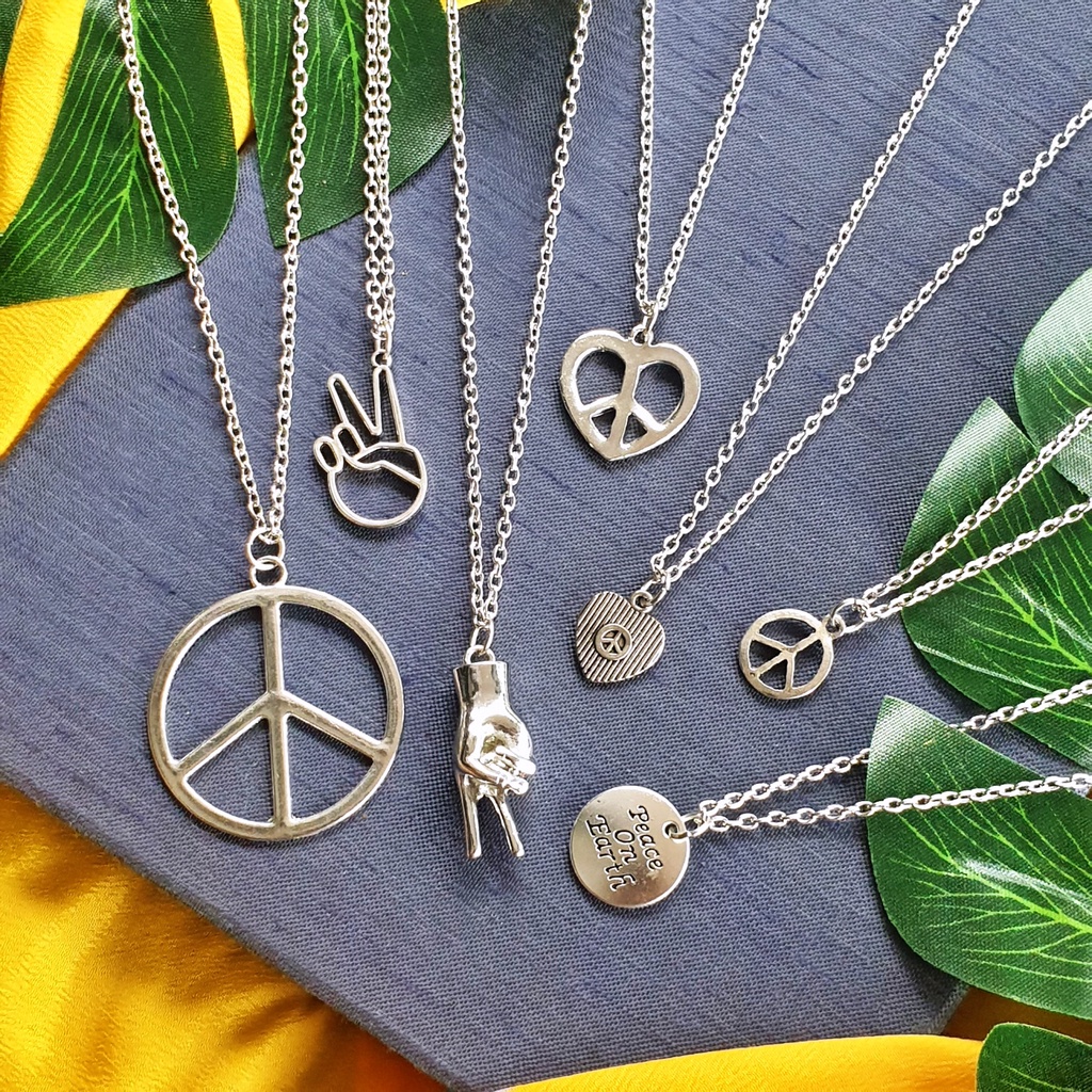 Peace Sign Charm Chain Necklace - Hippie Trippy Summer Boho Peace Psychedelic Goblin