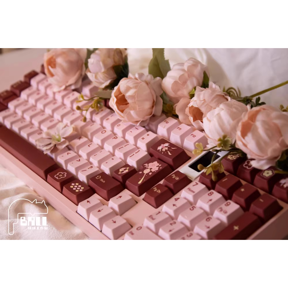 Peach Blossom Keycaps, 140 Keys PBT Keycaps Cherry Profile DYE-SUB Personalized GMK Keycaps For Mechanical Keyboard