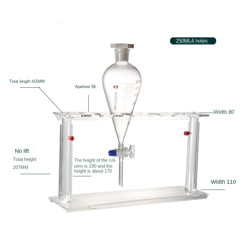 Pear Shaped Separating Funnel Rack with Four Holes 60/125 / 250 / 500ml Detachable Lifting Plexiglass-1Pcs