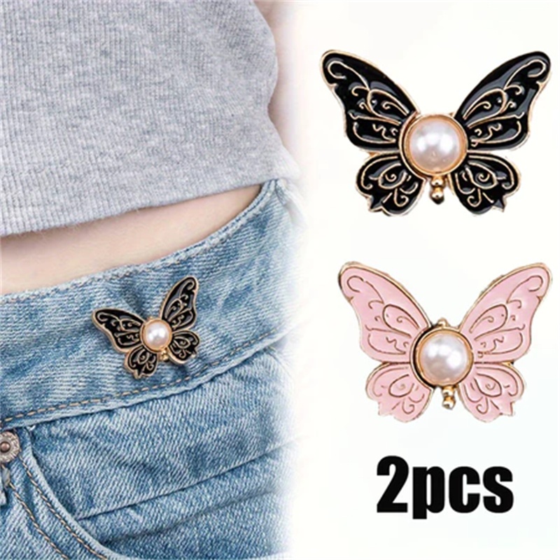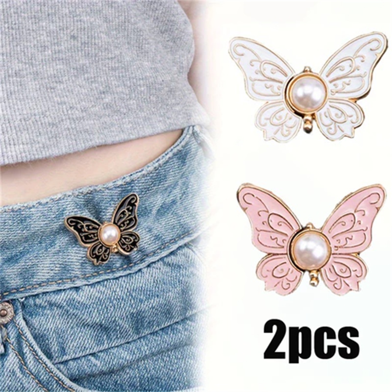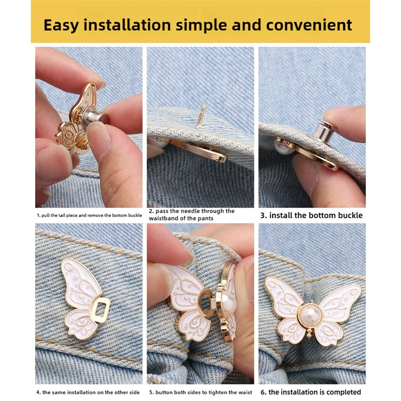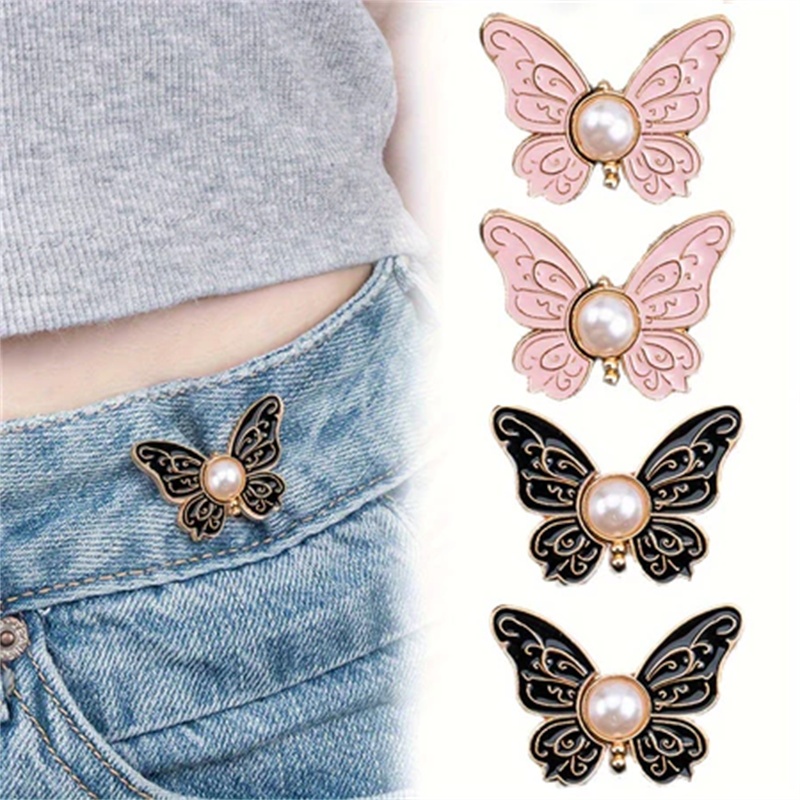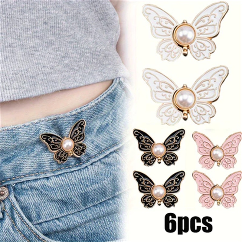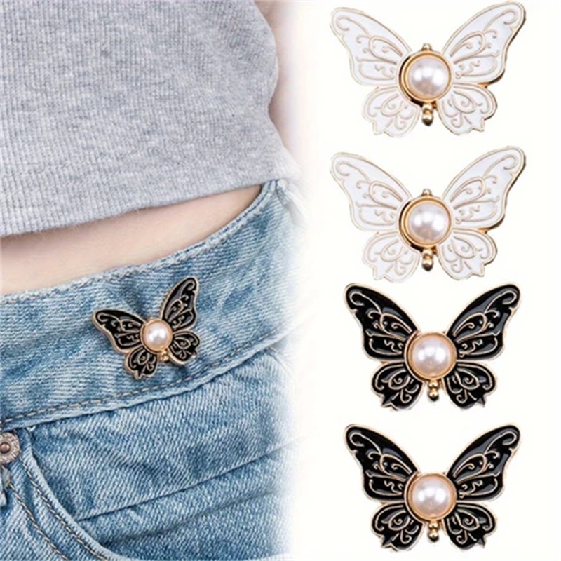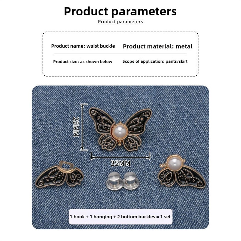 Pearl Butterfly Waist Buckle Detachable Nail-Free Seam-Free Narrow-Waist Button