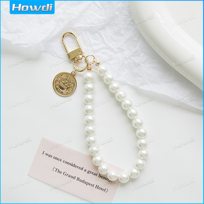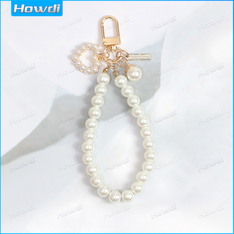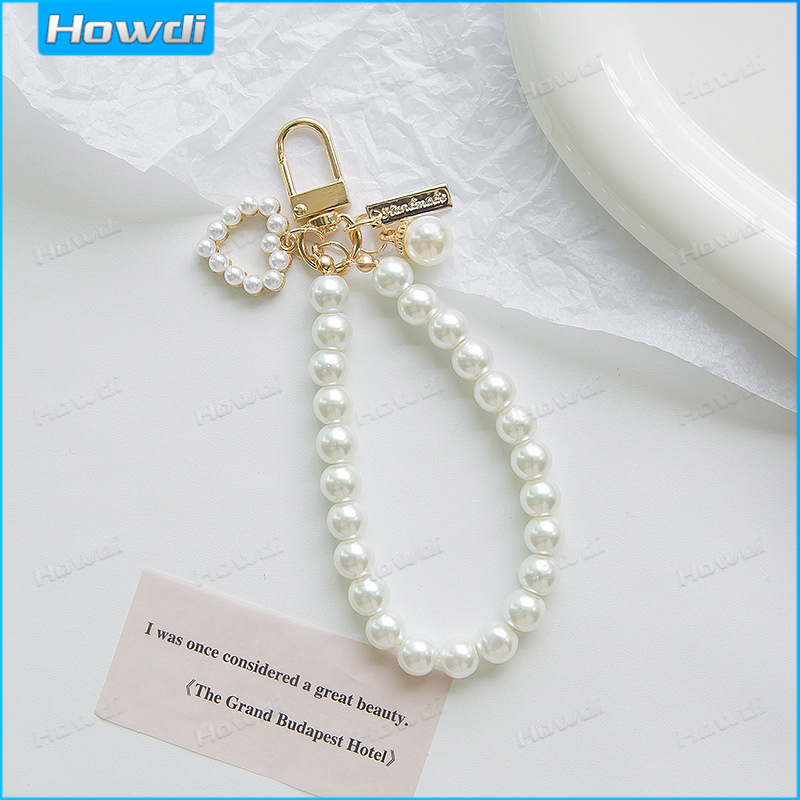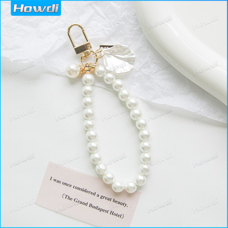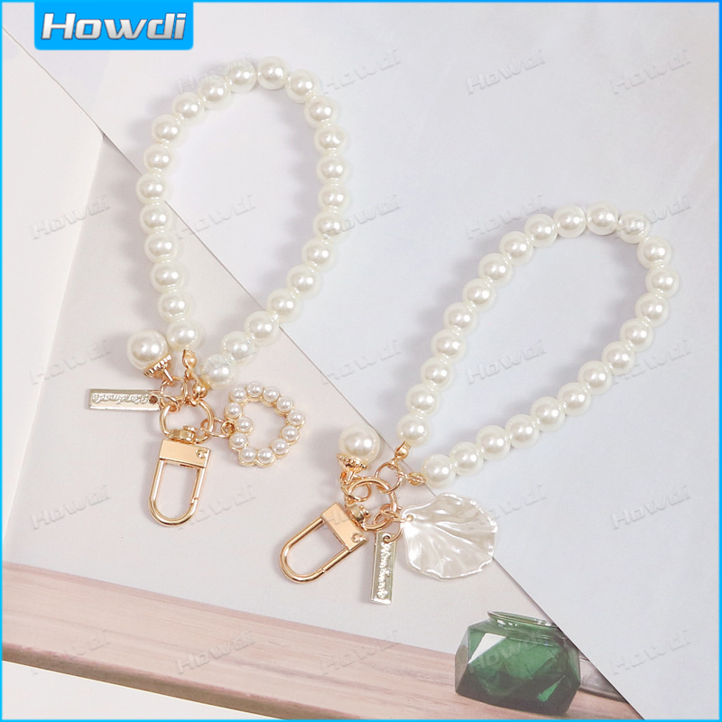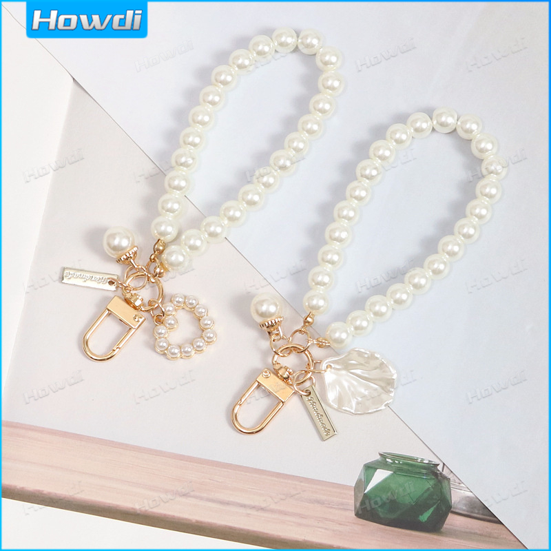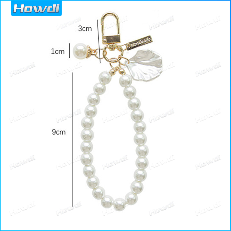 Pearl Keychain Luxury Women Jewelry Pearl Bead Shell Phone Bag Backpack Charm Accessory Car Key Key Chain