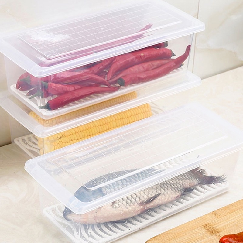 Pecfectlive01 Food Sealed Storage Box Rectangular Refrigerator Moisture-Proof Drain Vegetable