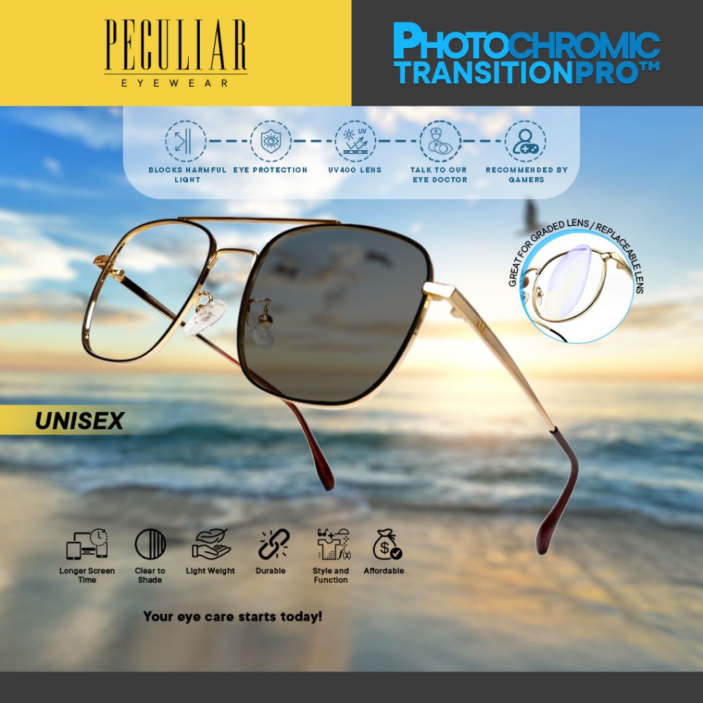 Peculiar Zane Square Metal Anti Rad Photochromic and Anti Radiation Eyeglasses for Woman Men