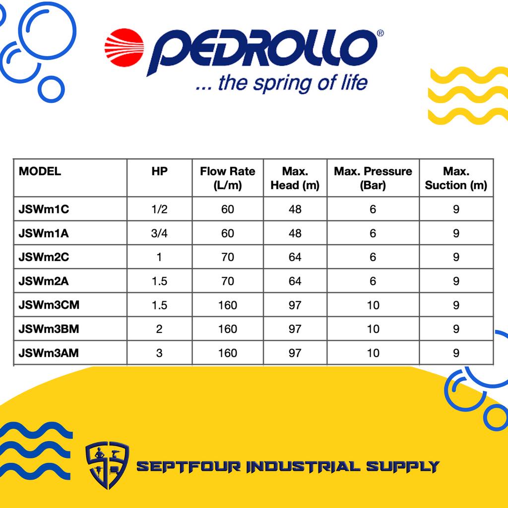 Pedrollo 1HP (750w) Self-Priming JET Pump /Water Pump JSWm2C (Made in Italy) Original