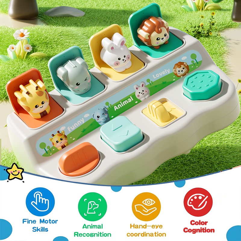 Peekaboo animal Pop up switch box Hide-and-seek Early education toy Toddlers Children mechanism box