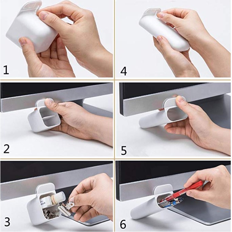 Pencils Pens Holders for Computer Monitor, Self Adhesive Under Monitor Office Supplies Storage Organ