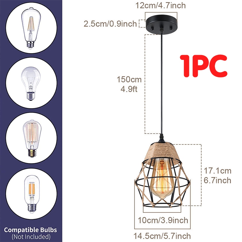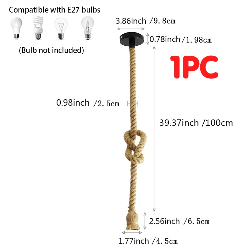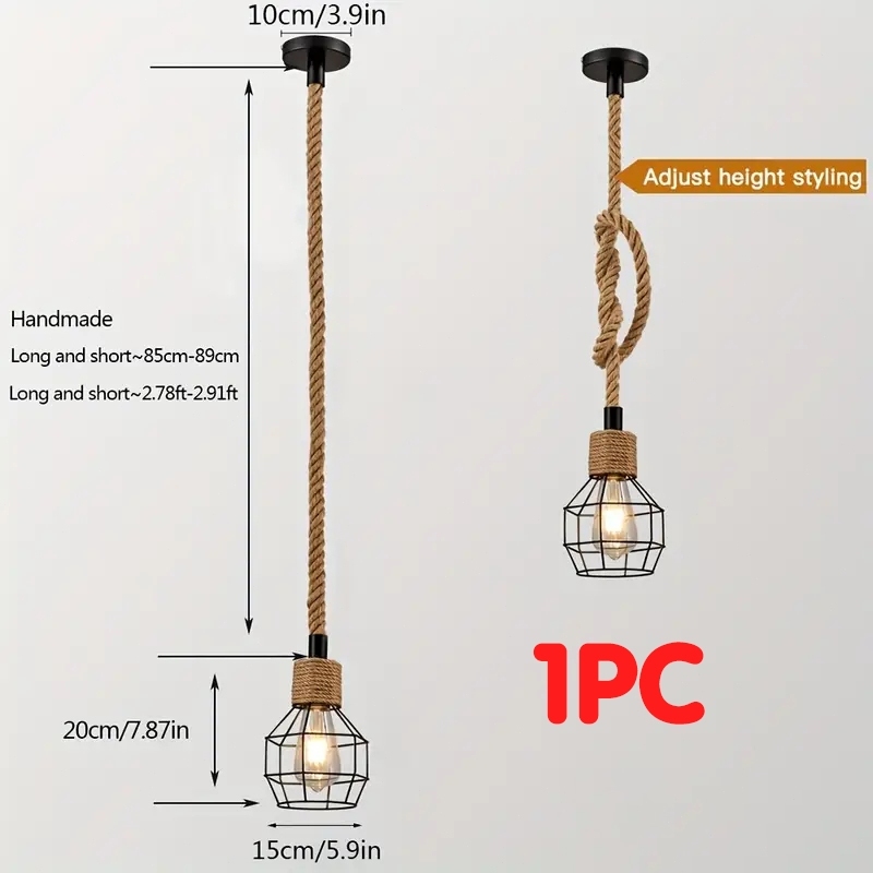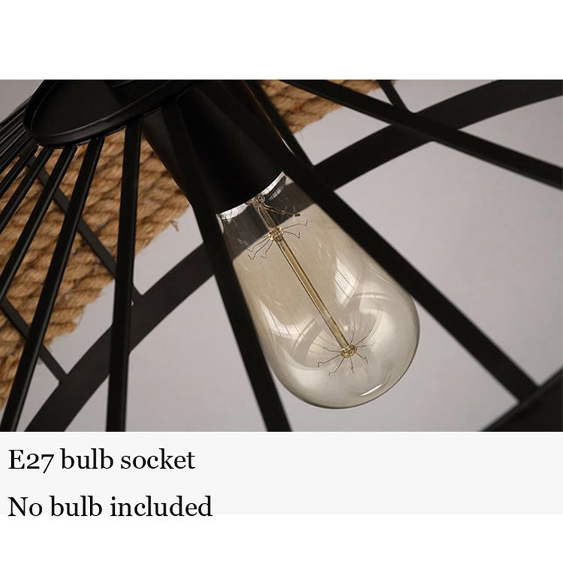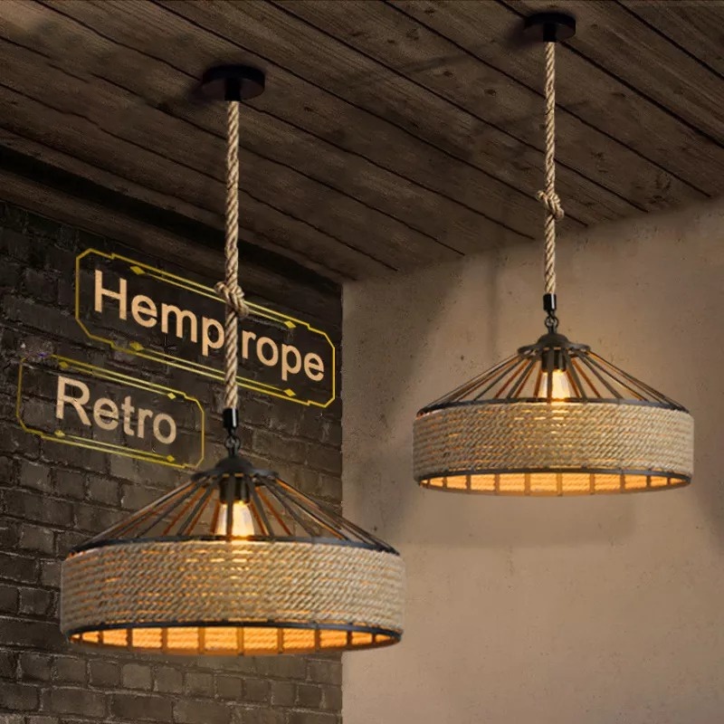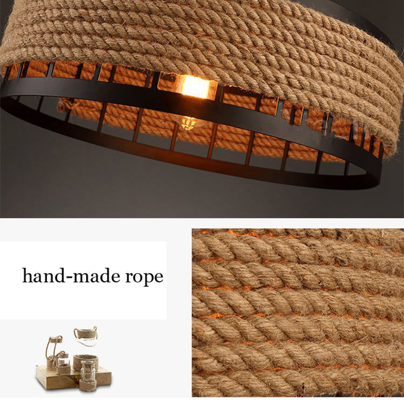 Pendant Light Industrial Retro Hemp Rope Yurt E27 Chandelier Restaurants Bar Deop Hanging Drop Lamps