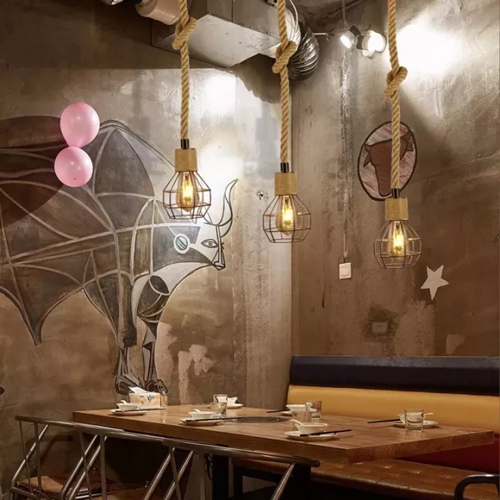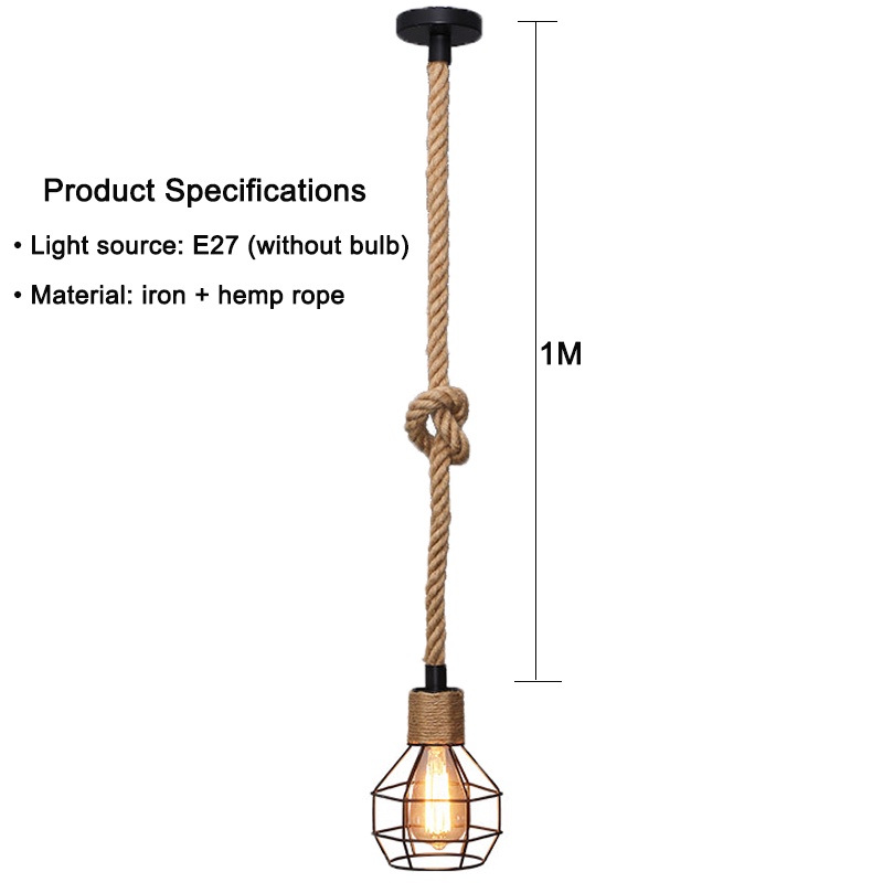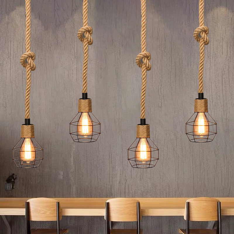 ECONN Pendant Light Retro Hemp Rope Iron Cage Drop Light for Bar Counter Cafe Dining Room
