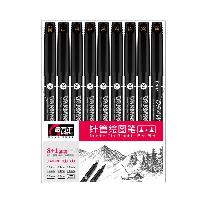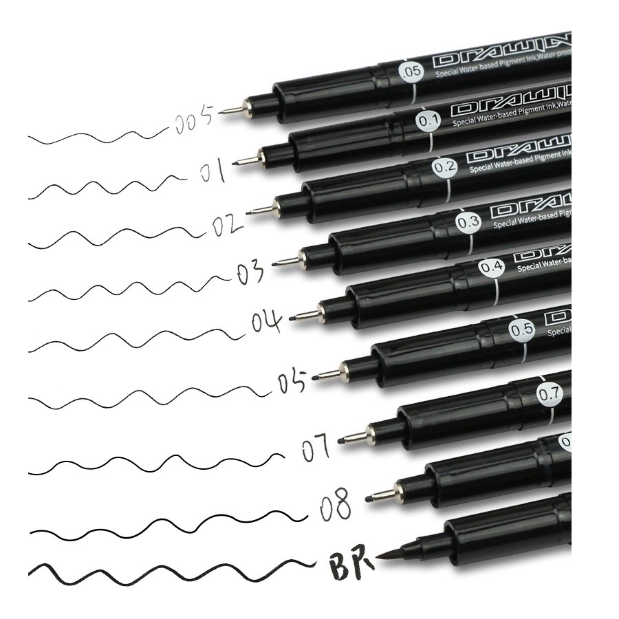 Penlab 9pcs Needle Tip Graphic Drawing Pen Set Micron Fine Liner Sketching Art Water-based Pigment Waterproof C6150