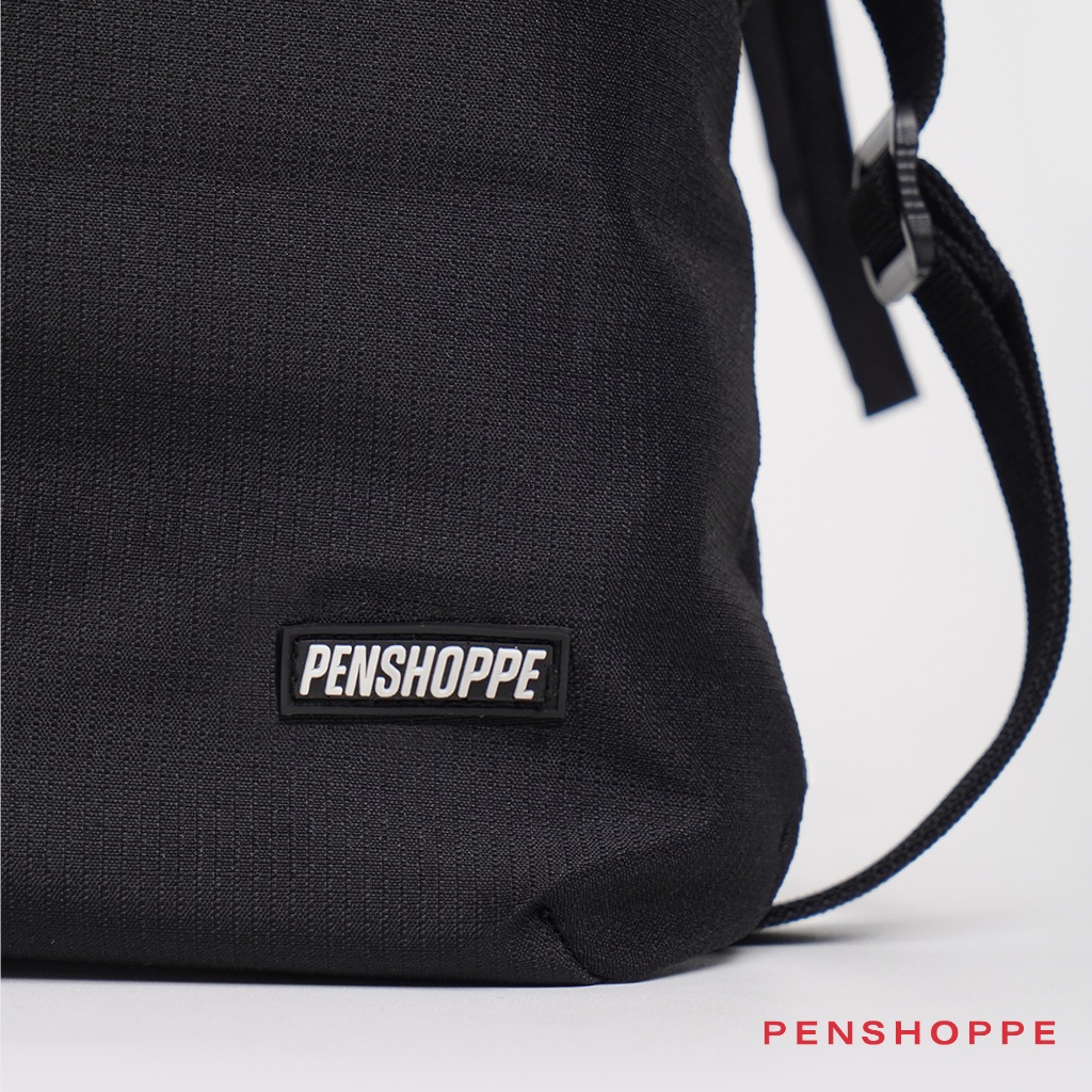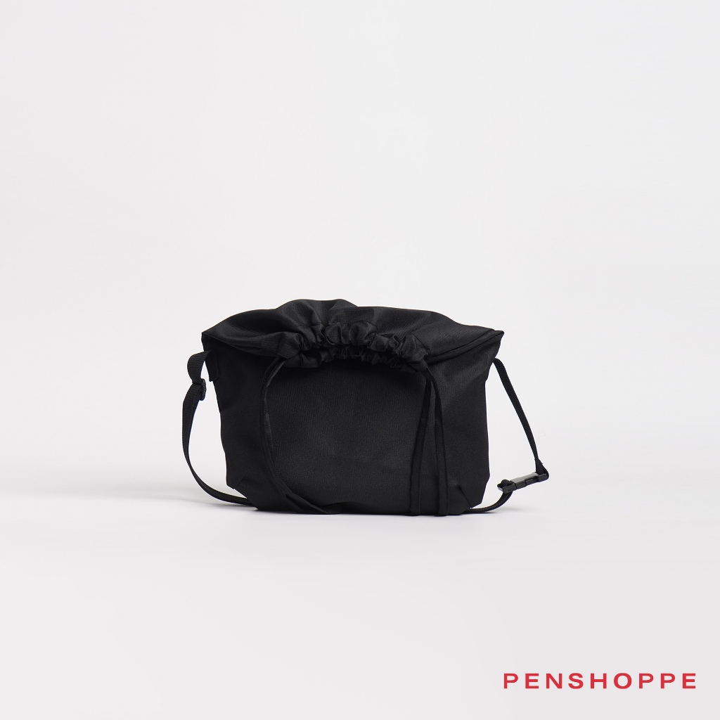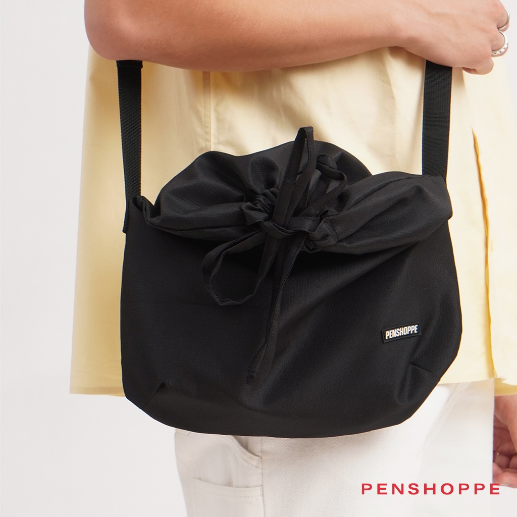 Penshoppe Drawstring Messenger Bag with Rubber Patch For Men Women (Black)