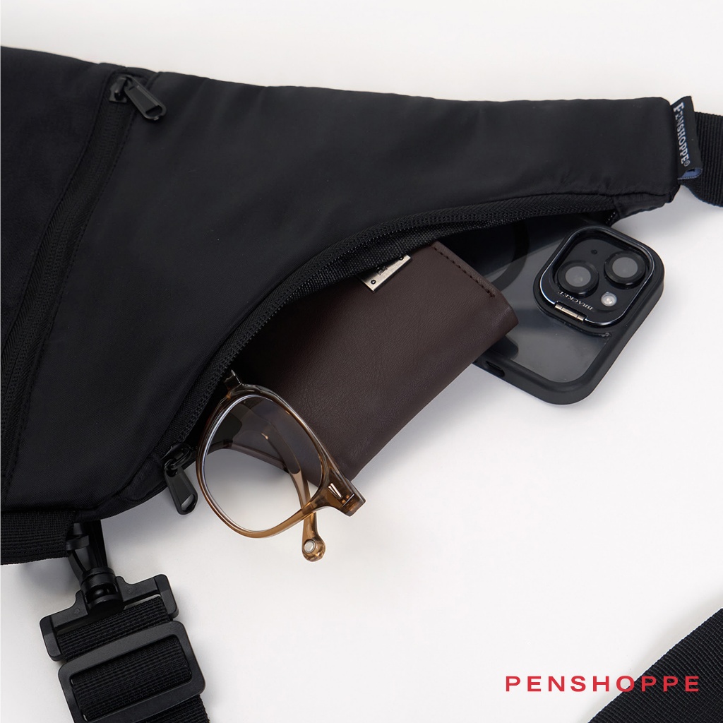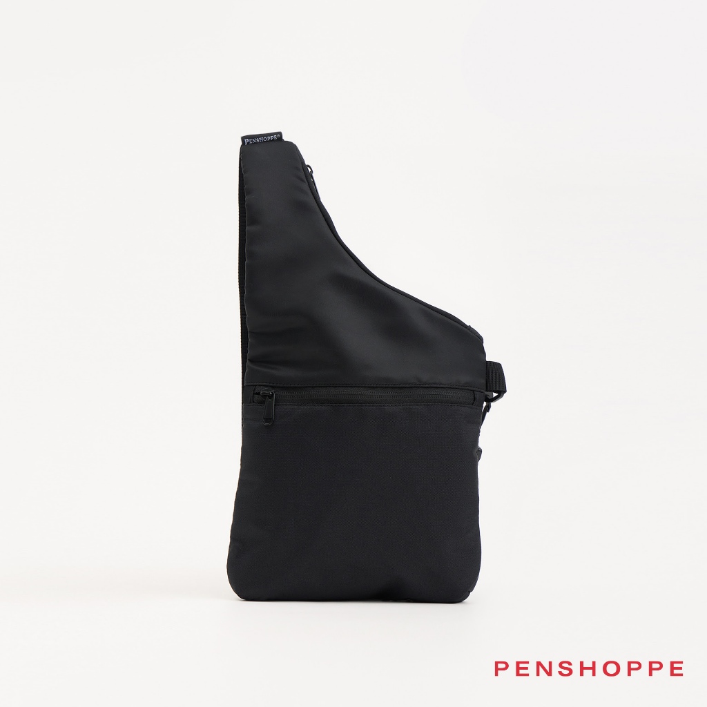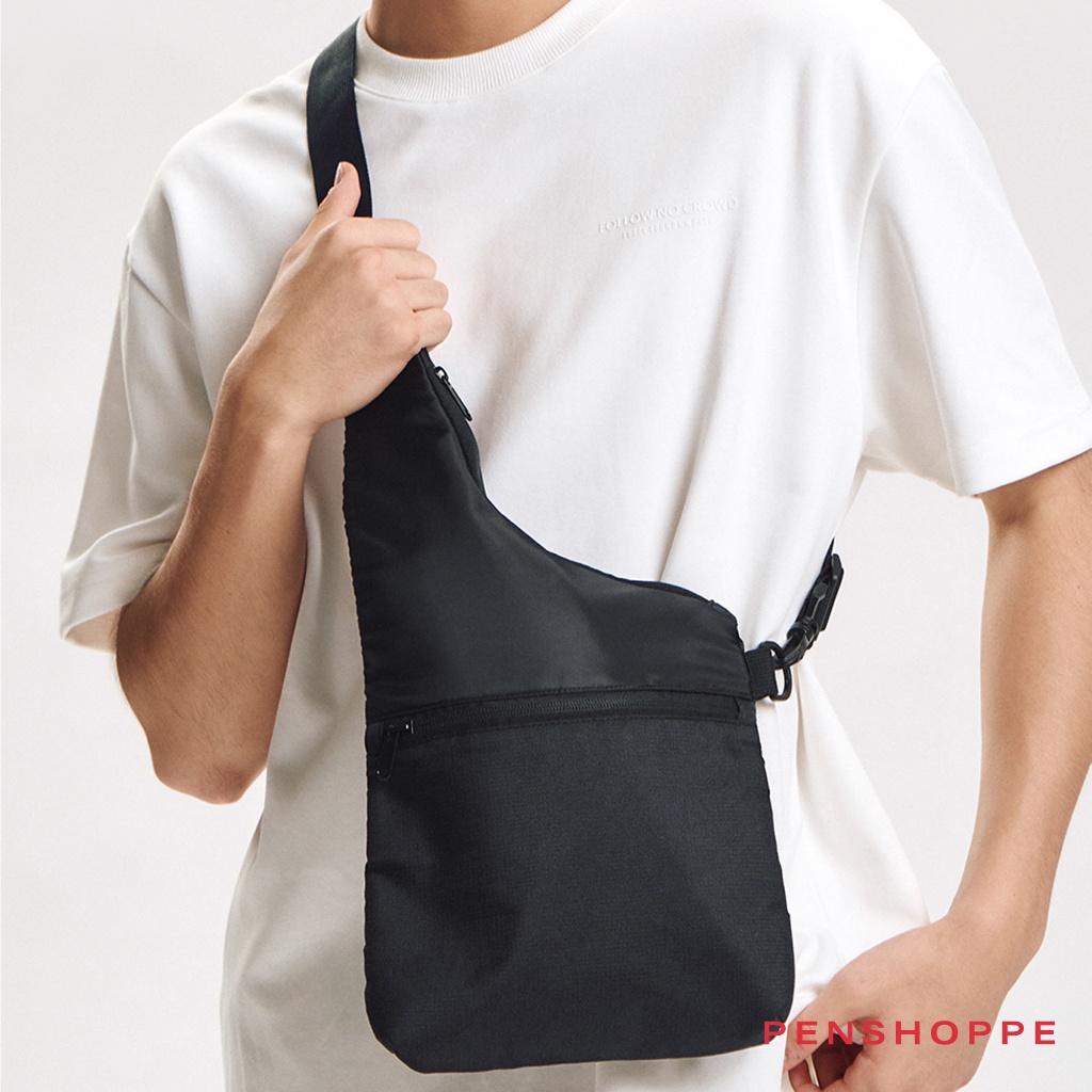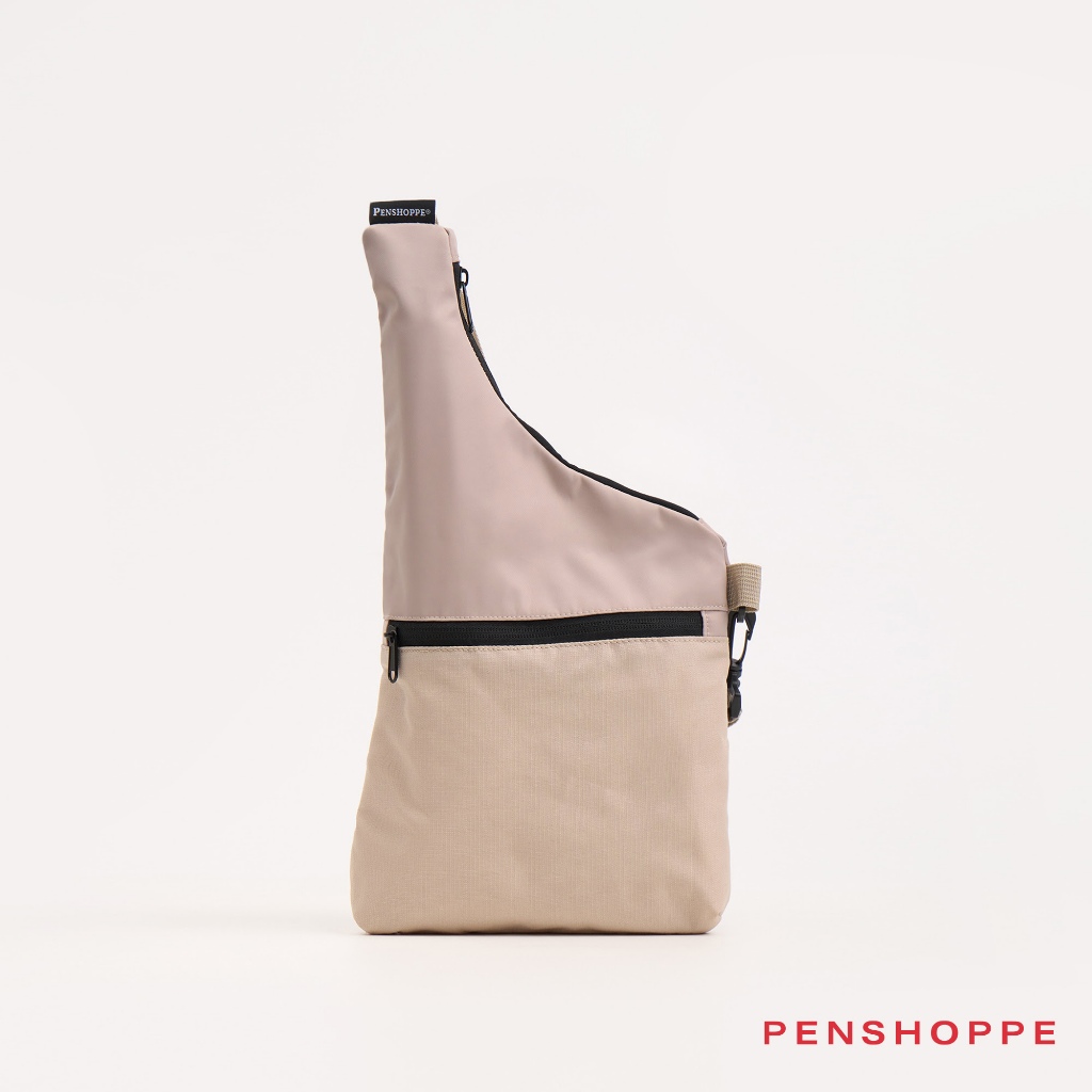 Penshoppe Nylon Crossbody Bag with Ripstop Front Compartment (Black/Beige)