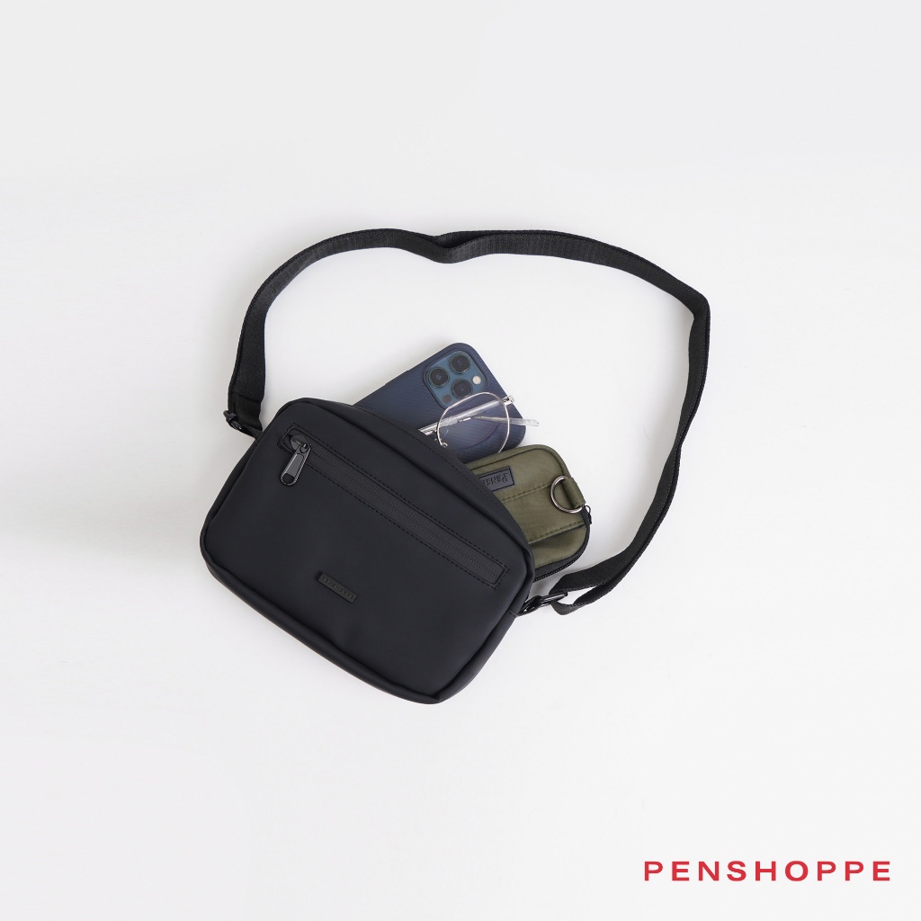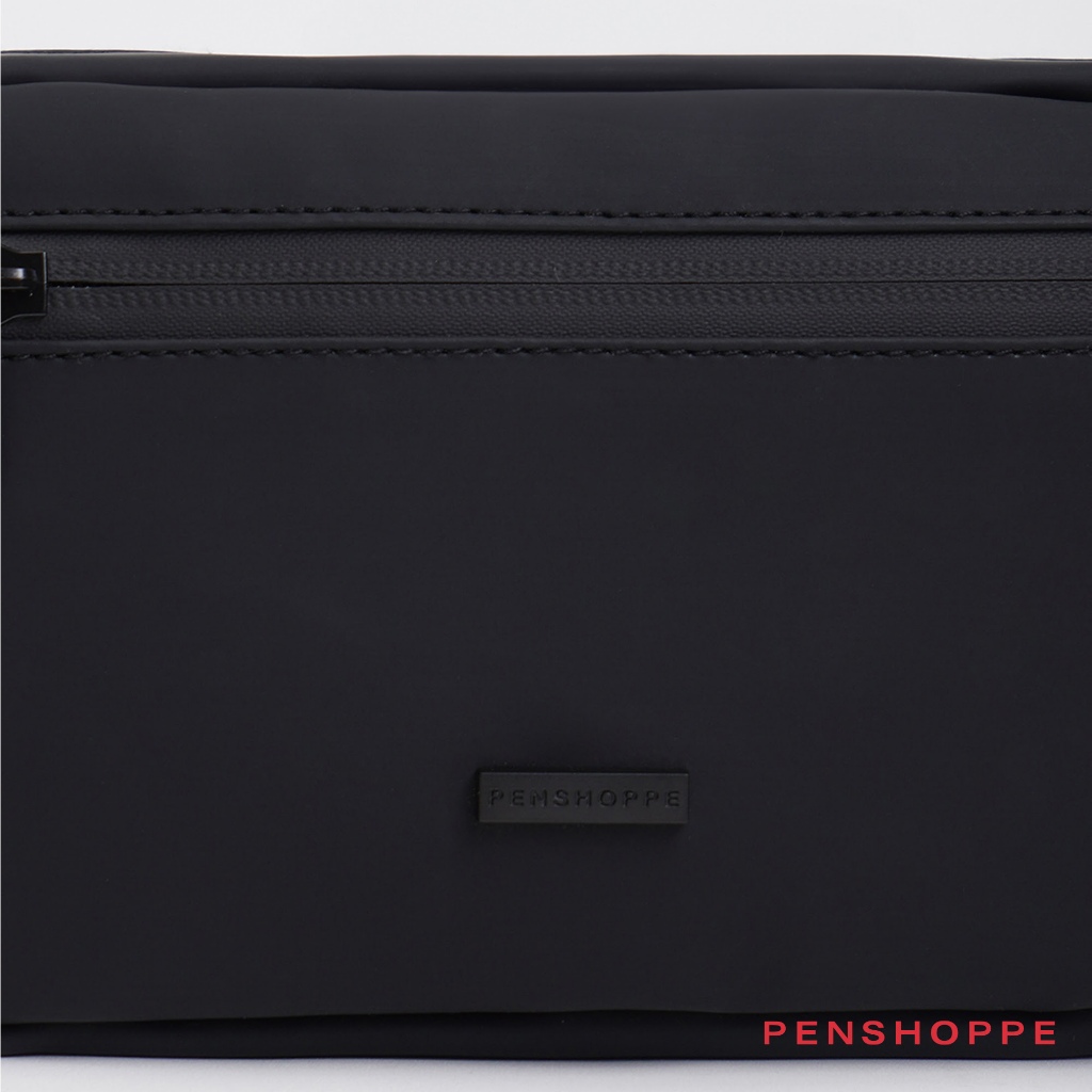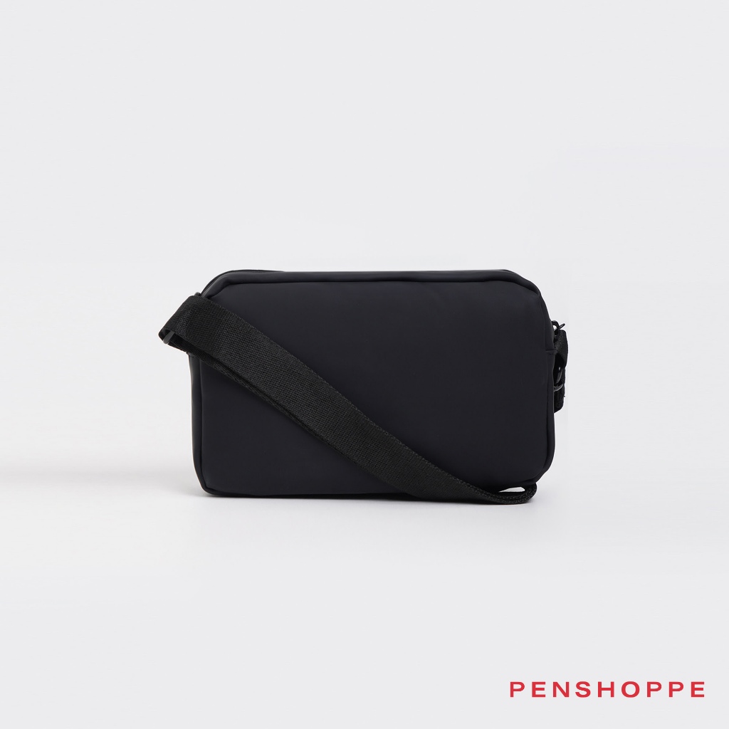 Penshoppe PU Coated Sling Bag with Metal Branding For Men Women (Black)