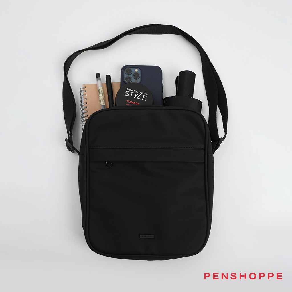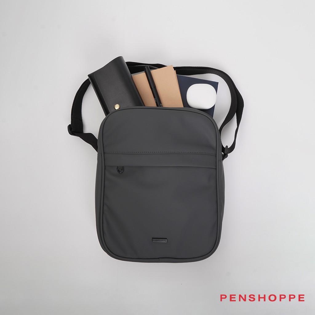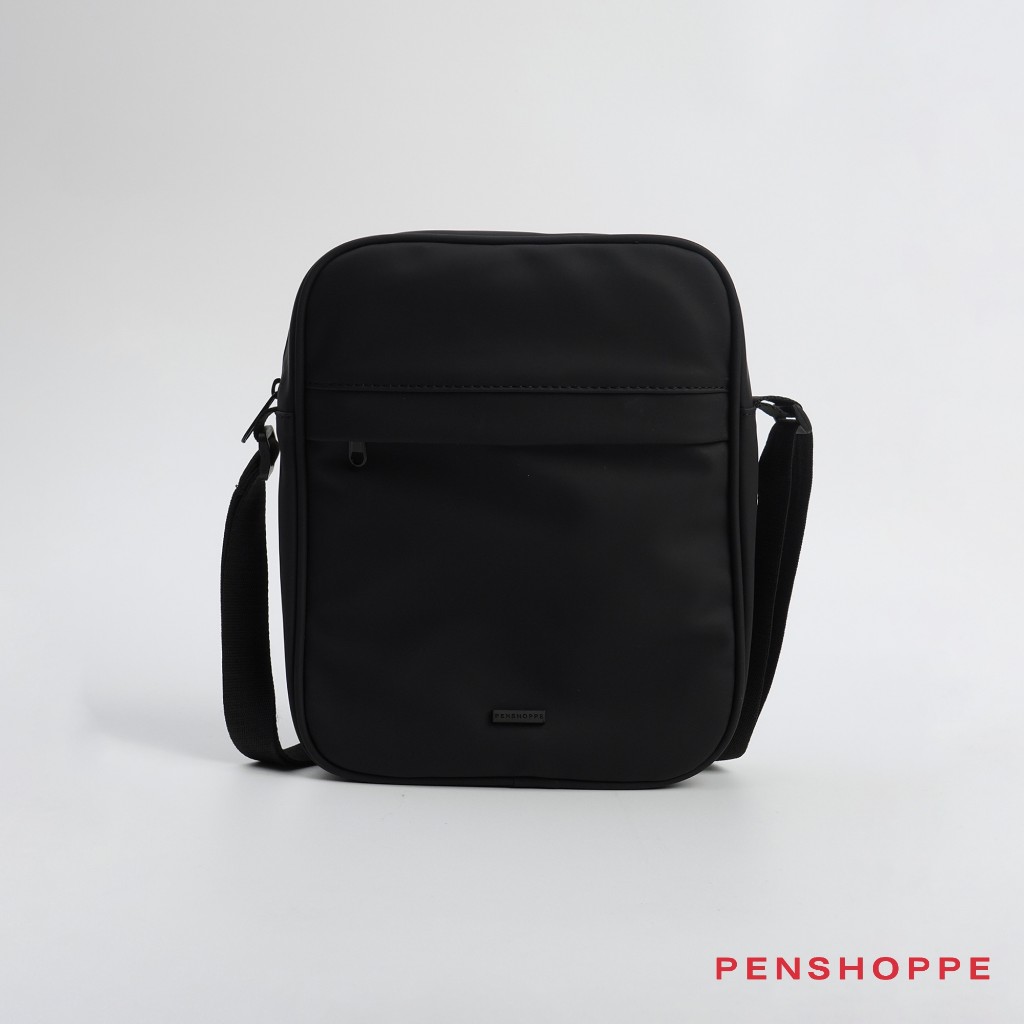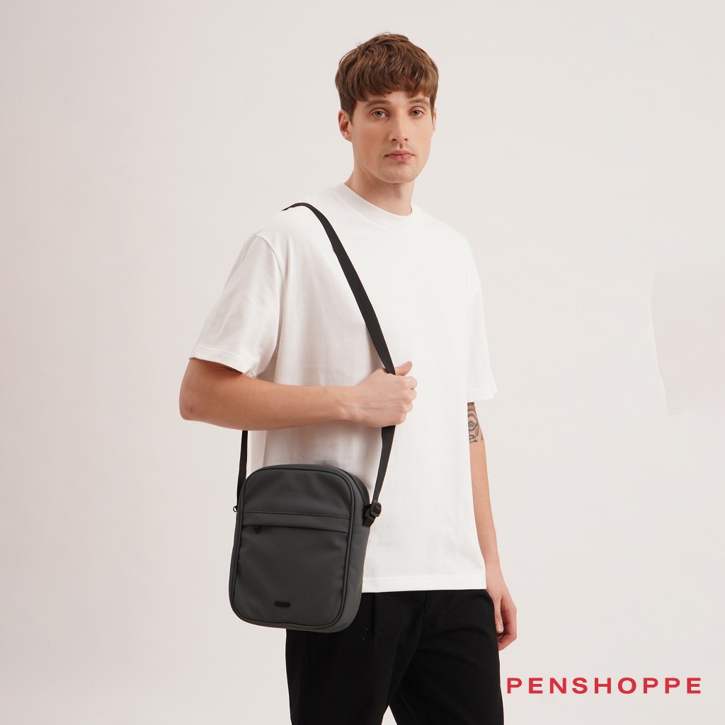Penshoppe Premium Sling Bag with Metal Branding For Men Women (Black/Dark Gray)