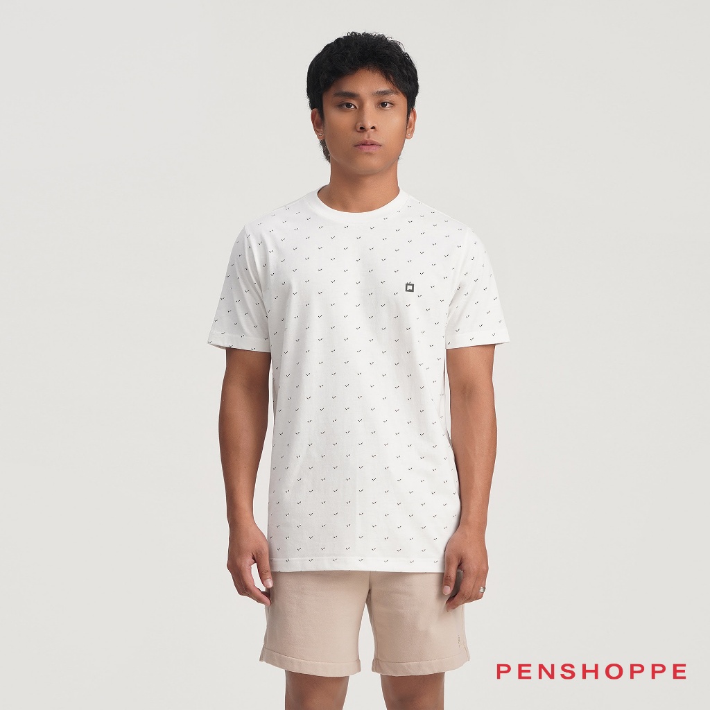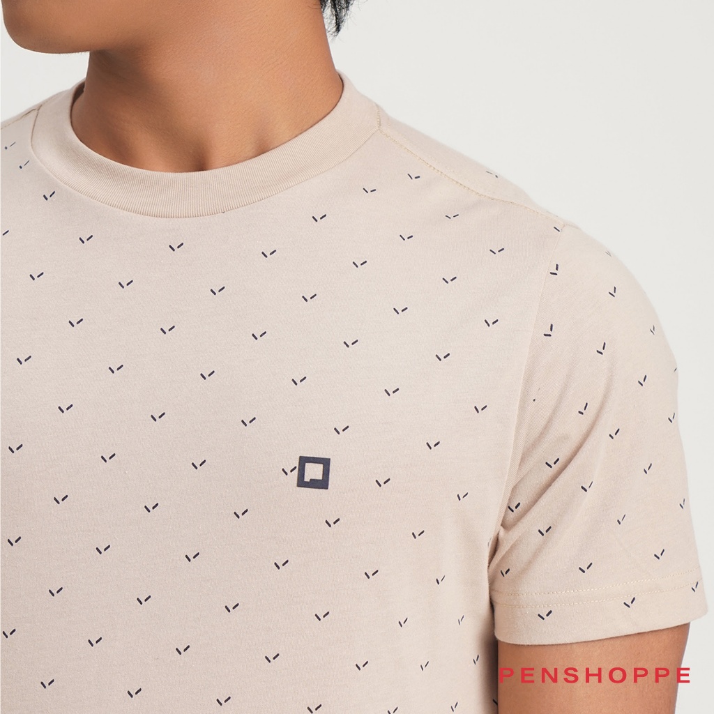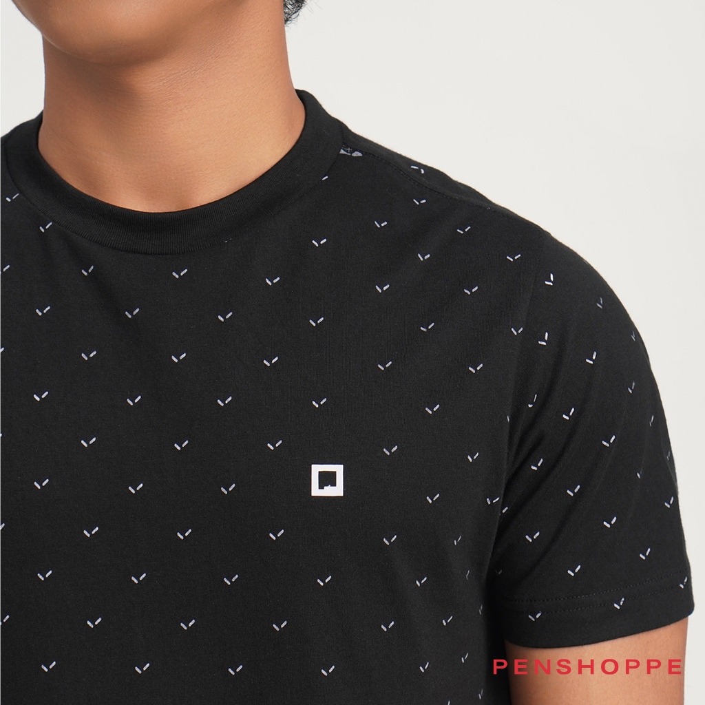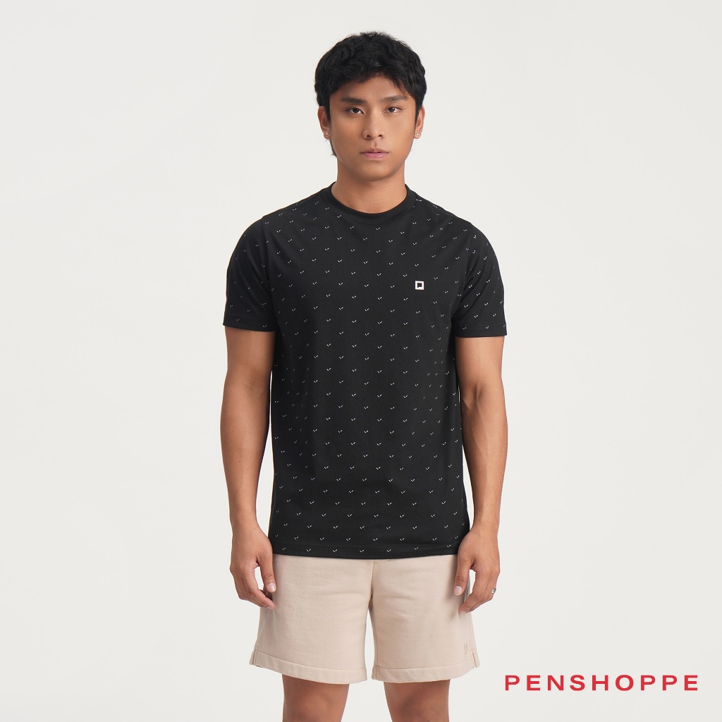 Penshoppe Regular Fit T-Shirt with All-Over Print For Men (Black/Evening Sand/White)