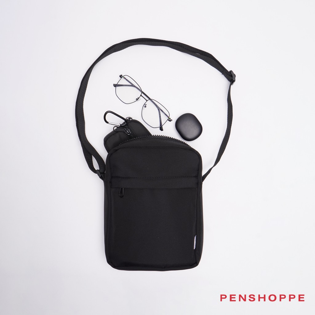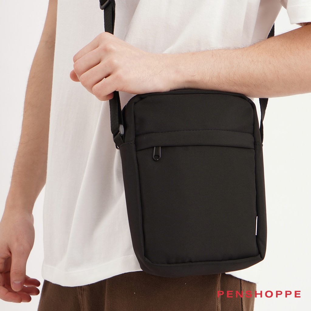 Penshoppe Sling Bag with Patch Pocket For Men Women (Black/Dark Gray)