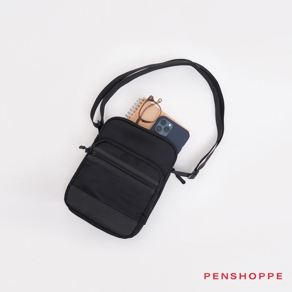 Penshoppe Sling Bag with Gusseted Front Pocket For Men Women (Black)