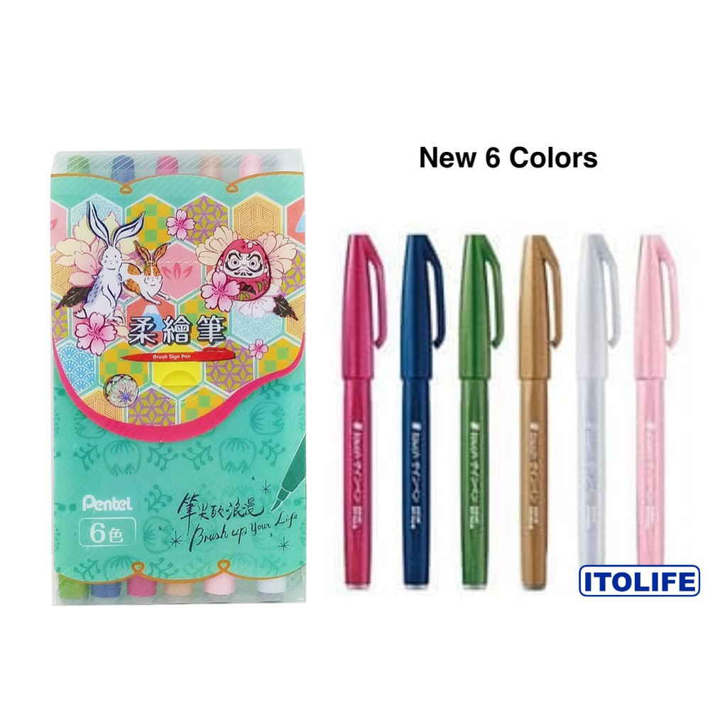Pentel Fude Touch Brush Pen- 6 Colors Set