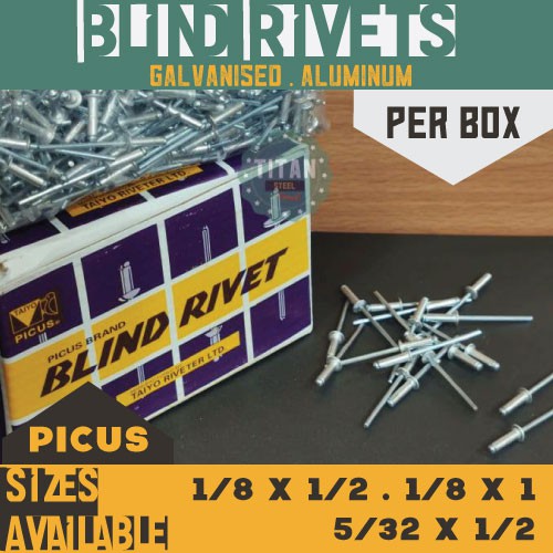 Per Box - Aluminum Blind Rivet (1/8 x 1/2, 1/8 x 1, 5/32 x 1/2, 5/32 x 3/4)