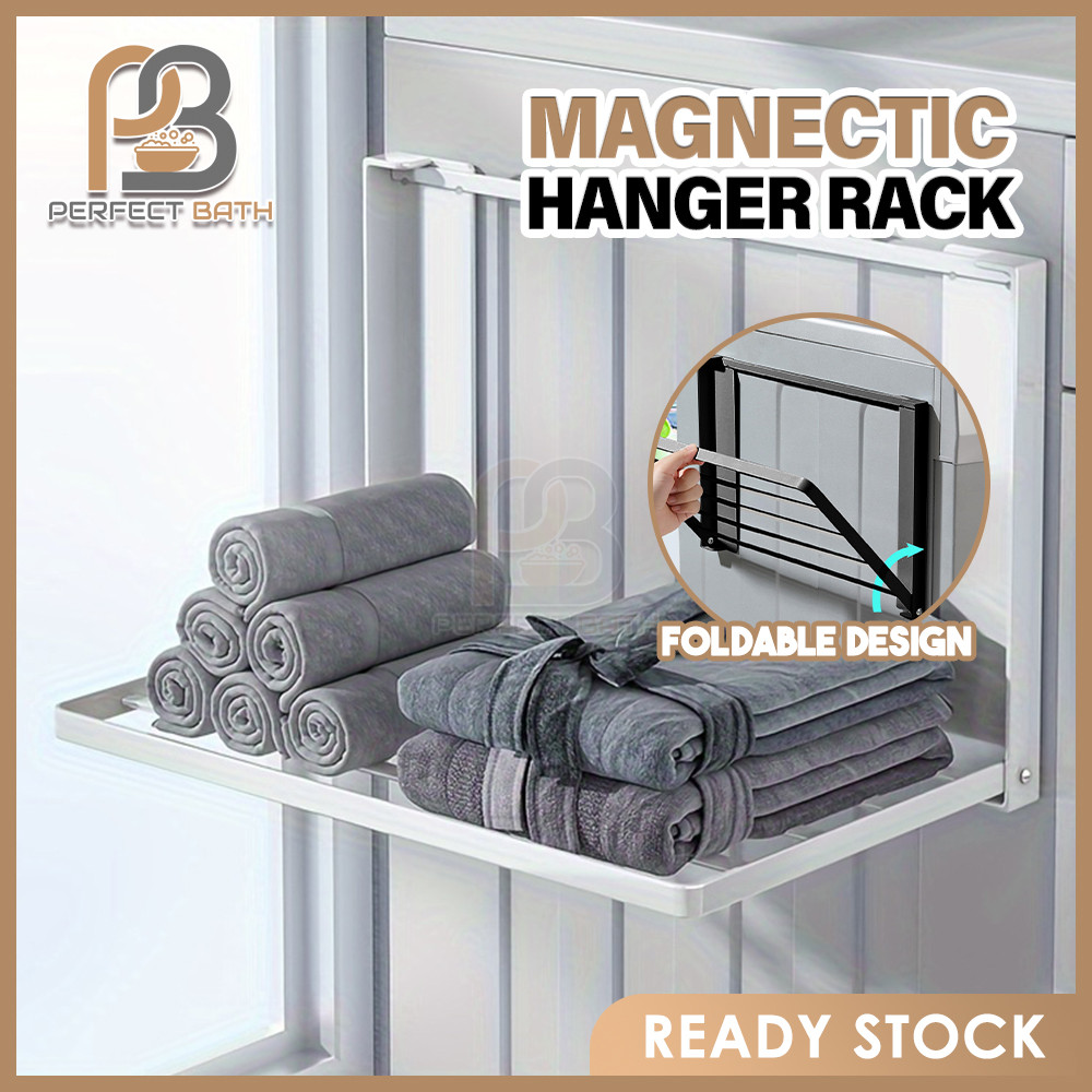 Perfect Bath Magnetic Laundry Hanger Rack Foldable Hanging Storage Rack Rak Magnetik Gantung Rak Penyimpanan Bilik Mandi