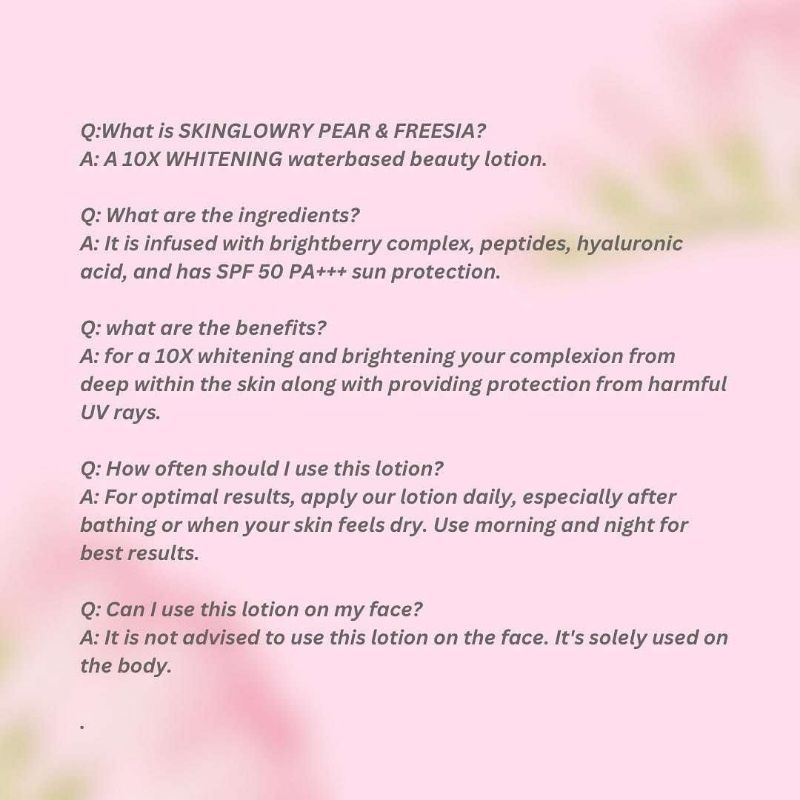 Perfect Glow Skin Glowry Pear and Freesia Water Based Beauty Lotion SPF50