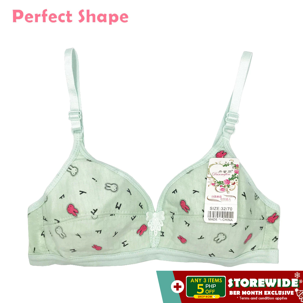 Perfect Shape Cup AA Bunny Print Bralette for Teens for School Baby Bra Beginner Wireless Bra (1pc)