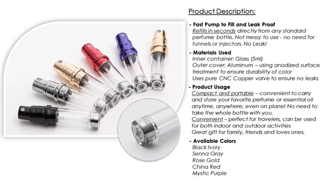 Perfume Essential Oil Atomizer Spray Bottle 5ml