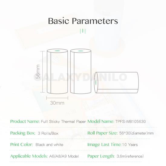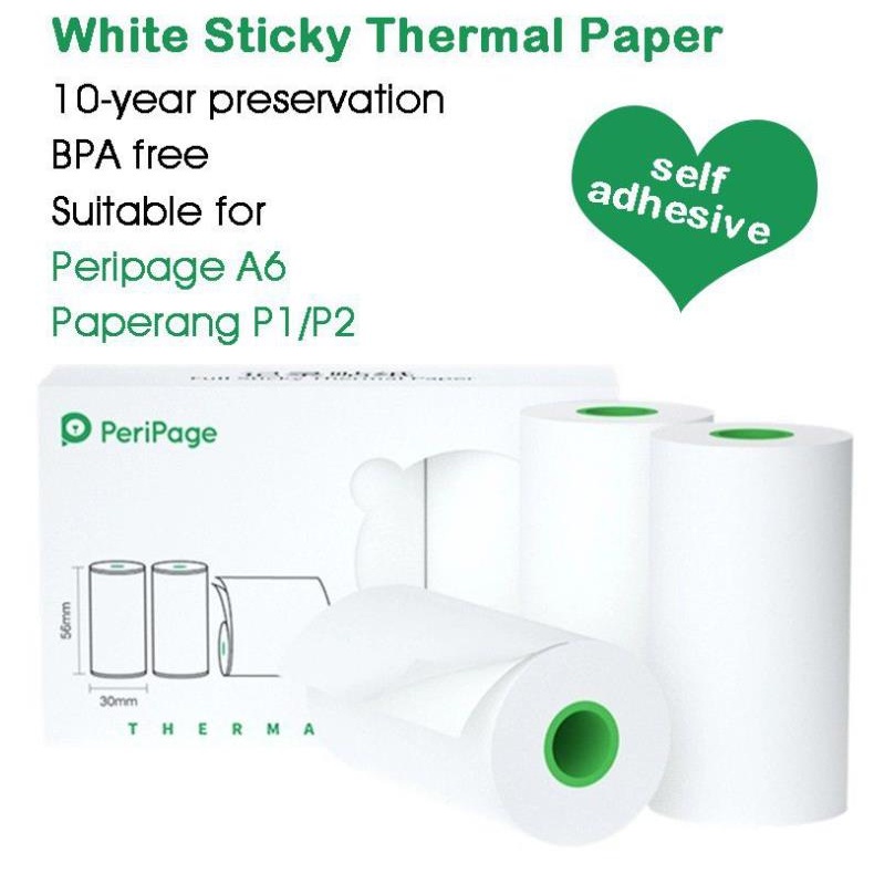PeriPage 56mm Full Sticky Thermal Paper Mini Printer Sticker Peripage Roll Paperang Sticker Paper for A6 A8 A9 Printers