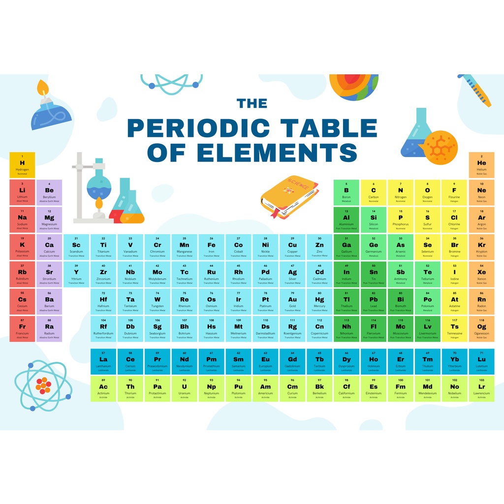 Periodic Table of Elements Science Chemistry Laminated Chart A4 Size
