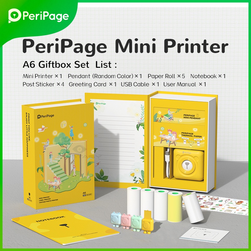 Peripage 203Dpi Yellow Gift Box Set Mini Printer Phone Portable Sticker Pocket A6 56-58mm Paper