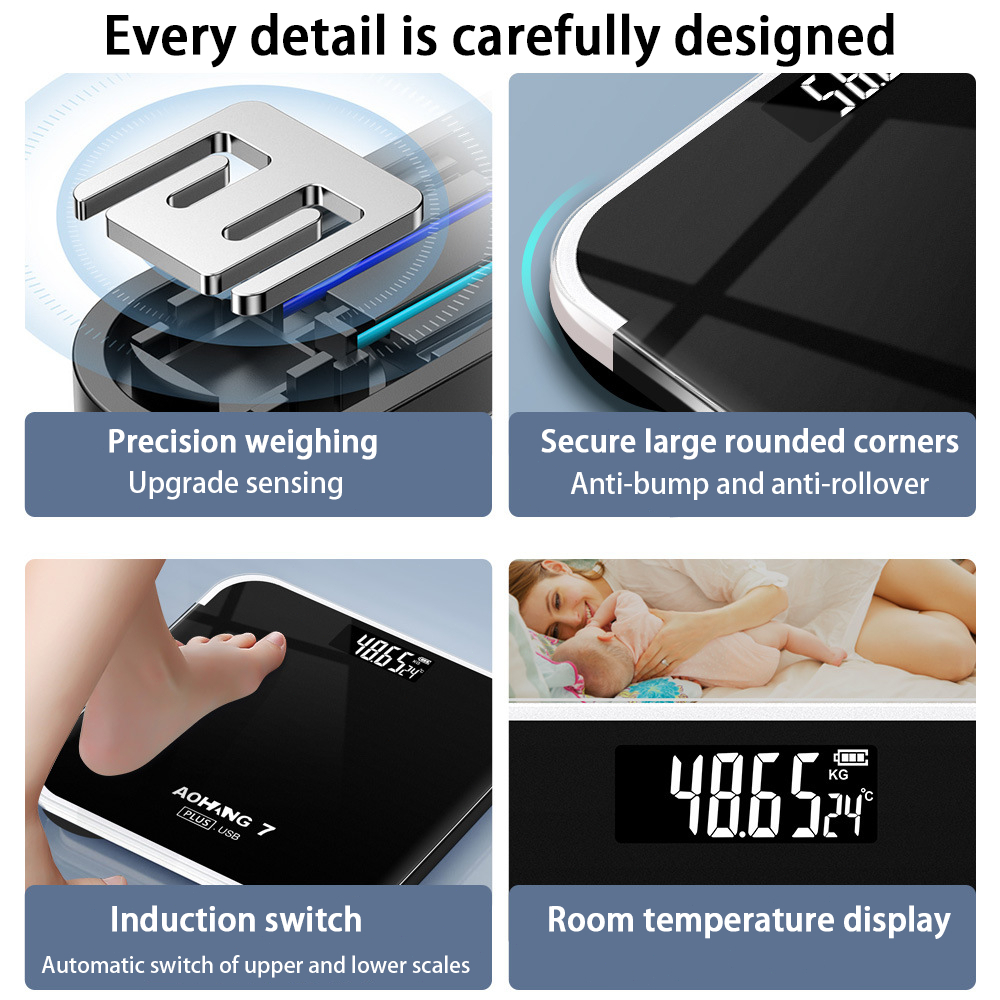 Personal Weight Scale High-Precision Charge Timbangan Bathroom Scale Digital Body Weight Indicator