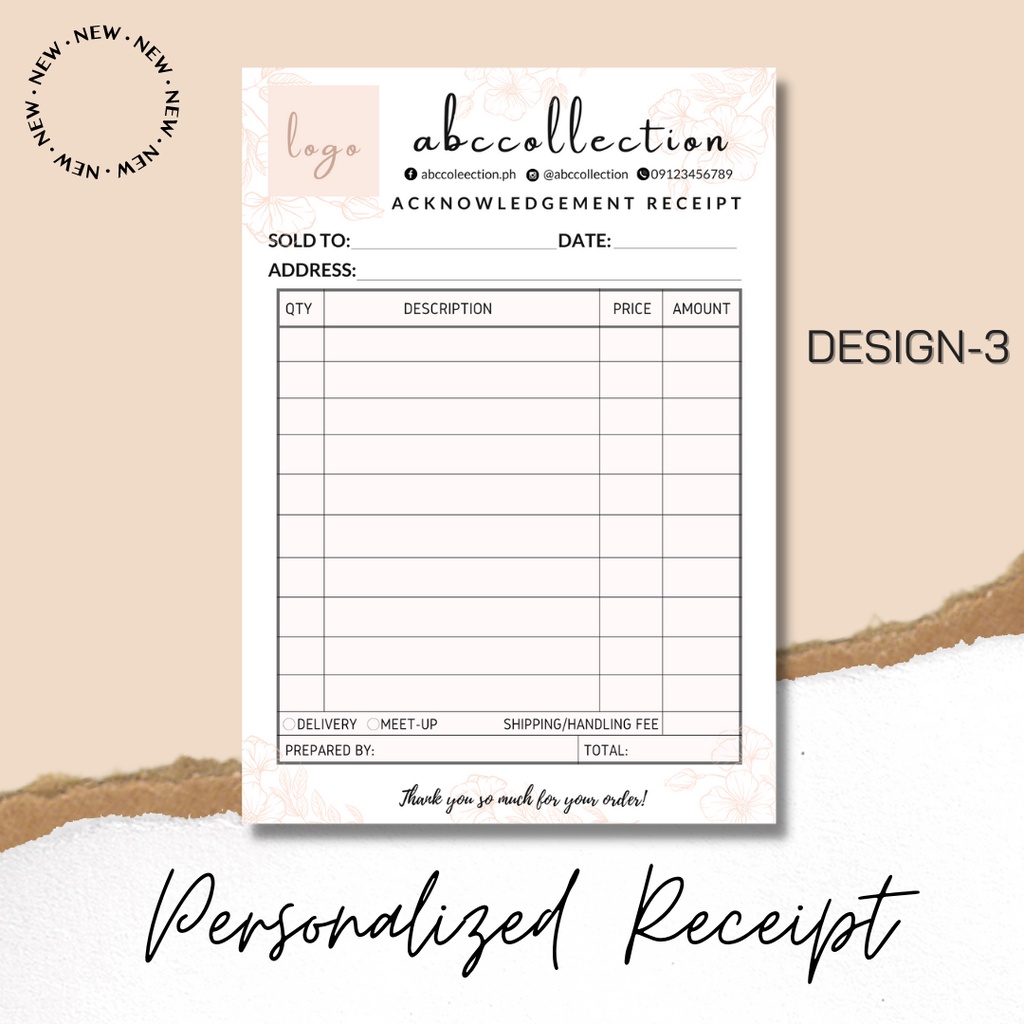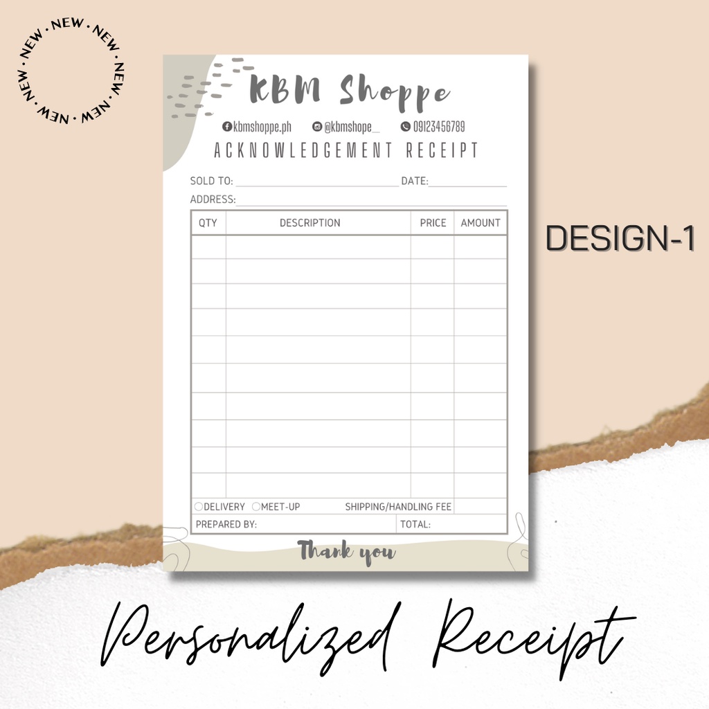 Personalize/Customize Receipt [50/80sheets] 4x5.5 inches