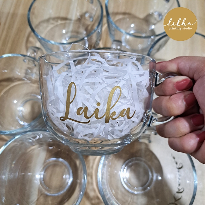 Personalized 450ml glass mugs with vinyl decals for gifts souvenir giveaway birthday wedding