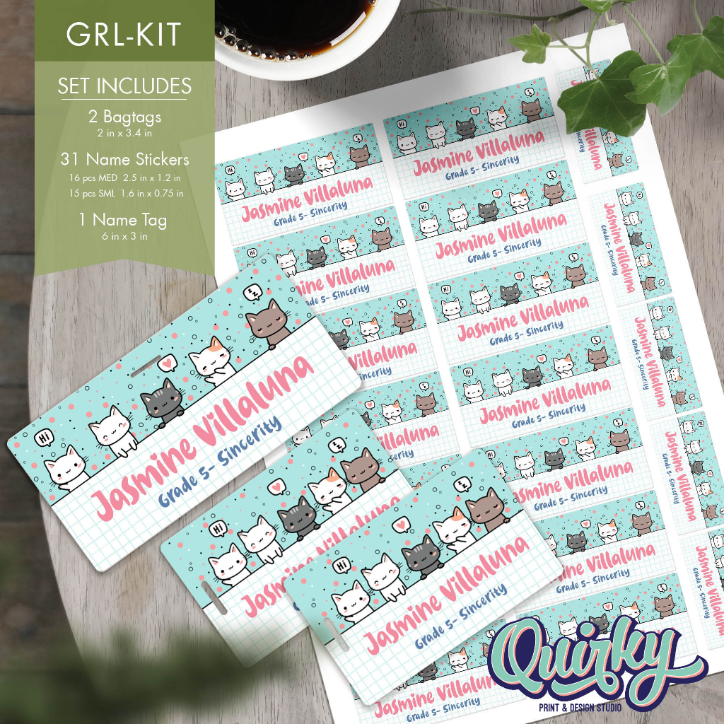 Personalized Back To School Set - Girl Designs - Name Tag, Bag Tag and Name Stickers - Girl Designs