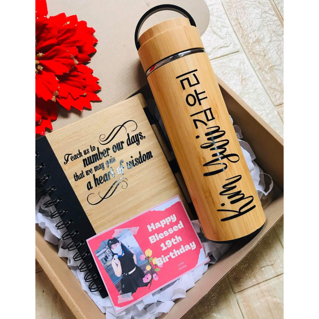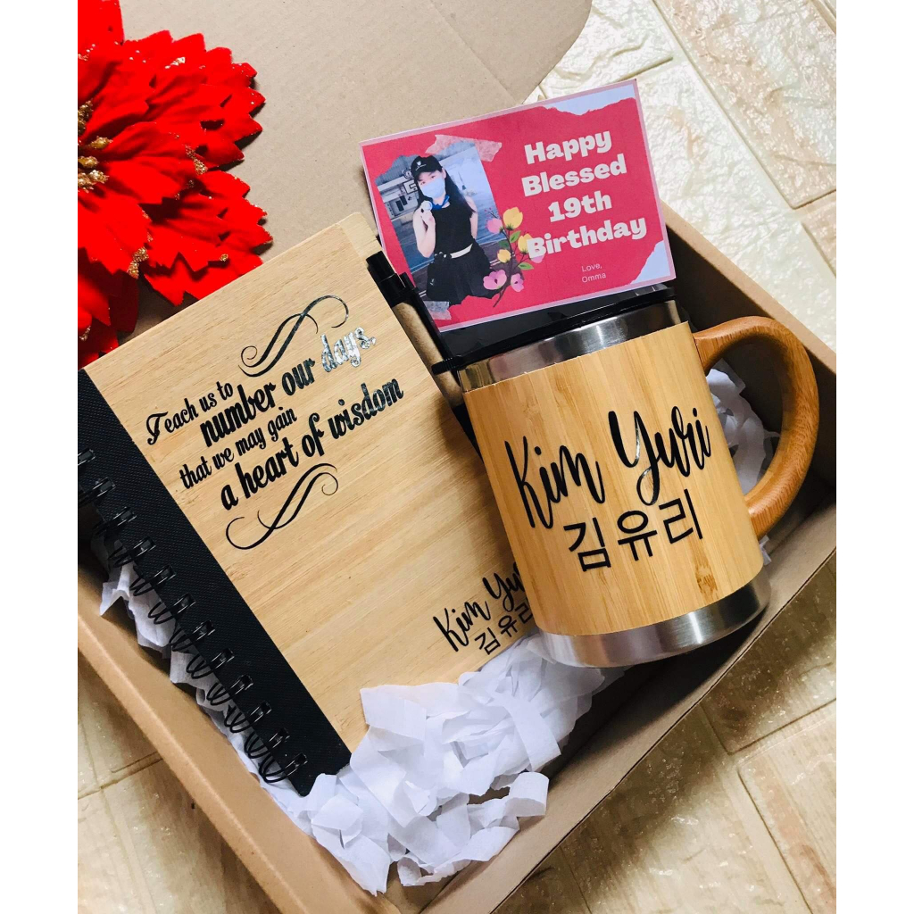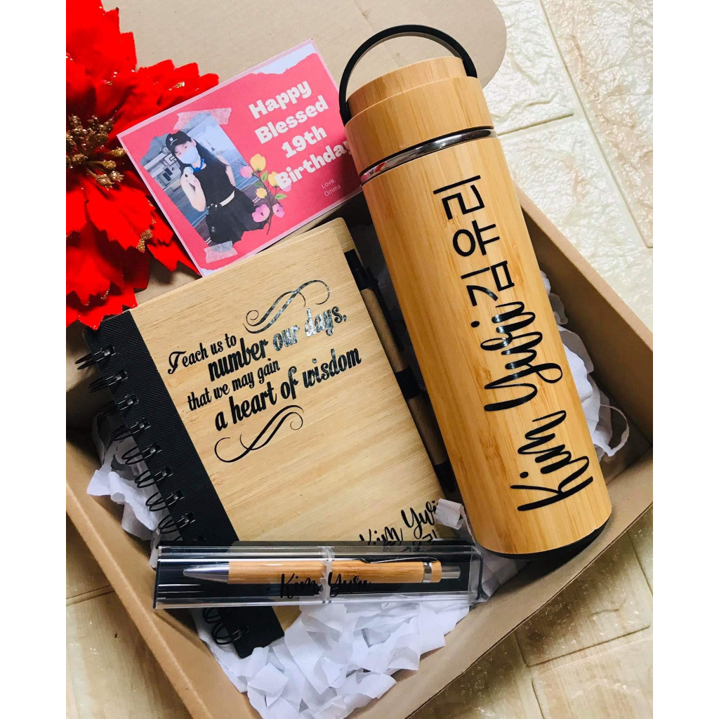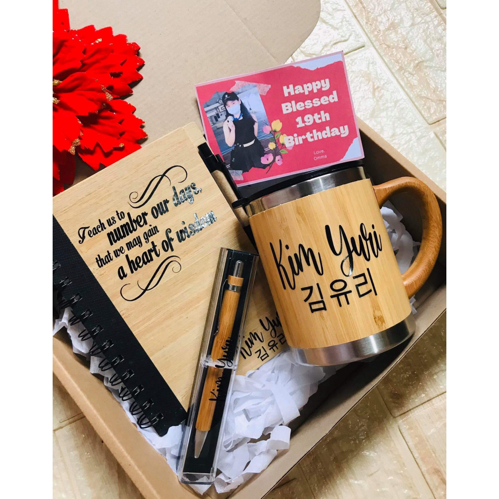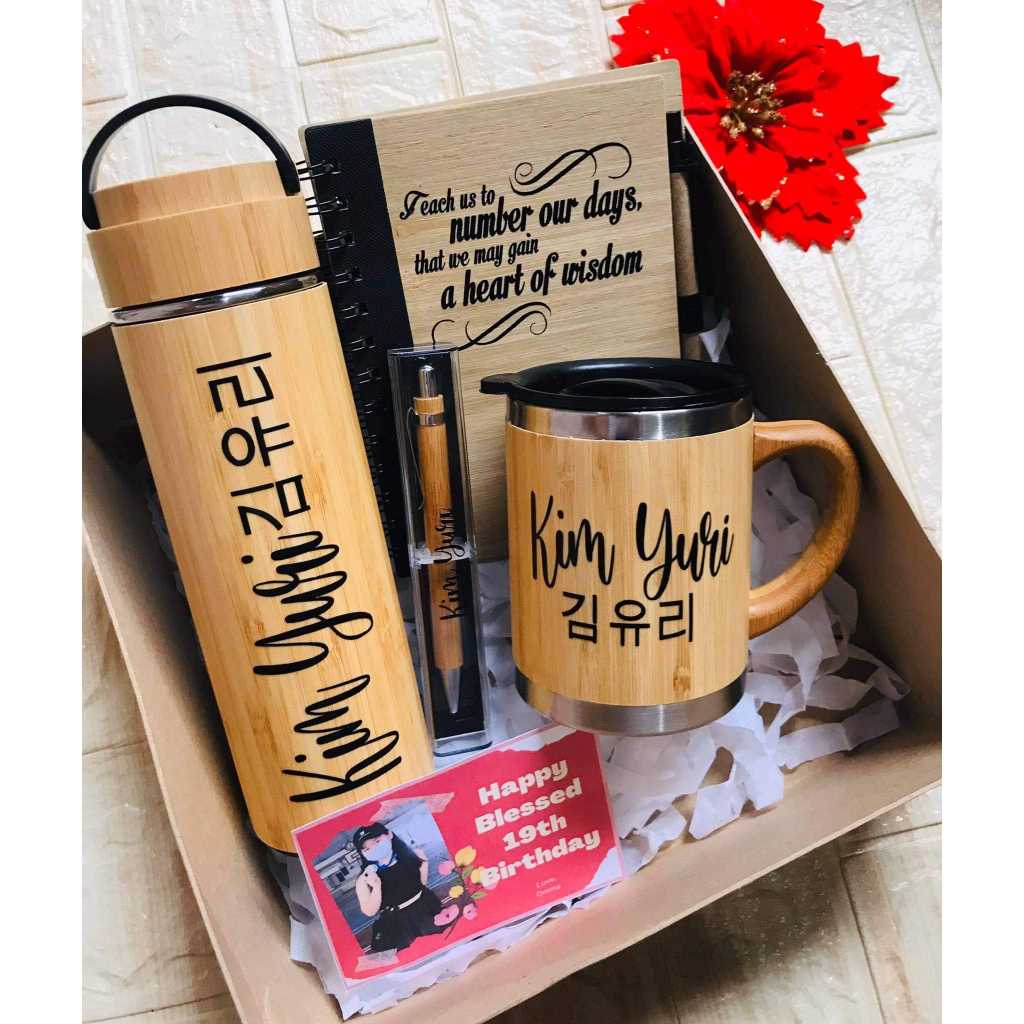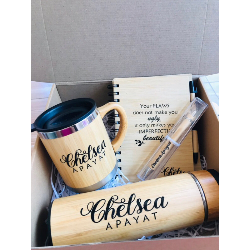 Personalized Bamboo Premium Gift Set(Tumbler,mug,notebook,pen)