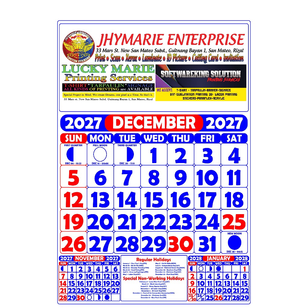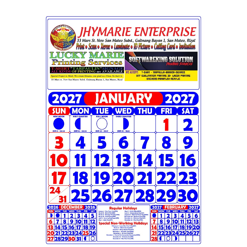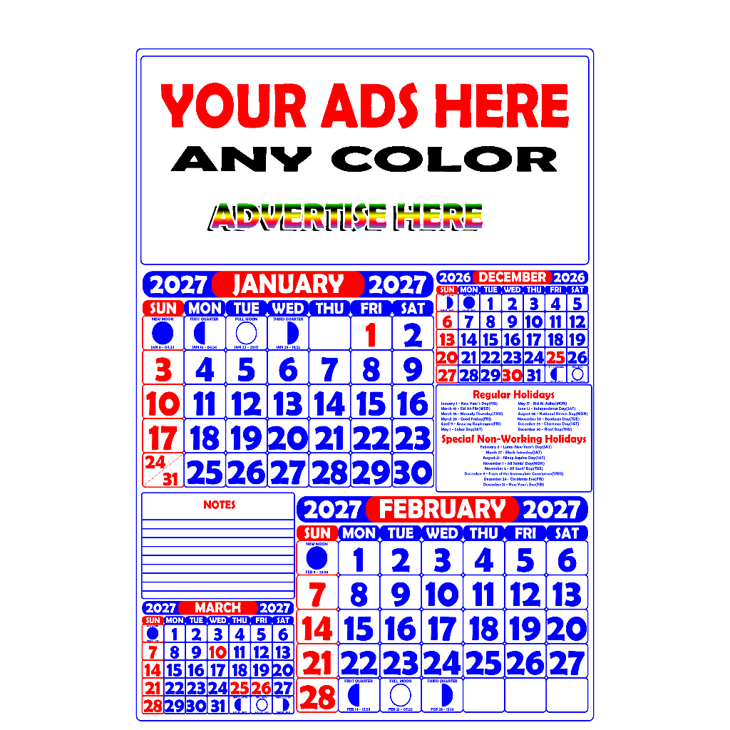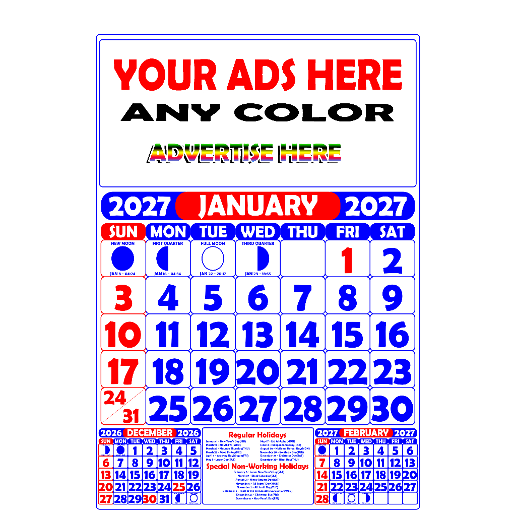 Personalized COMMERCIAL Calendar 2027 (8.5 x 13 inches) | 6 Pages / 12 Pages