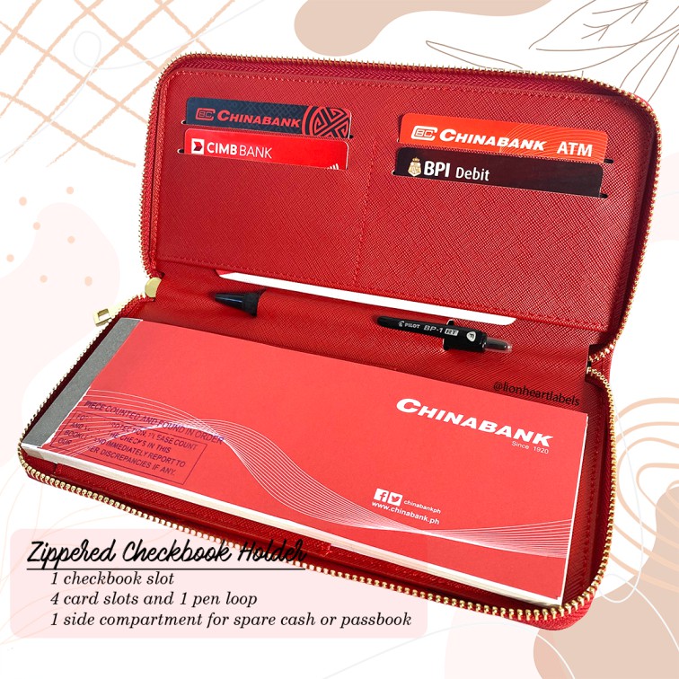 Personalized Checkbook Holder Wallet (4 Card Slots & Pen Loop) Leather Cheque BDO BPI Landbank China
