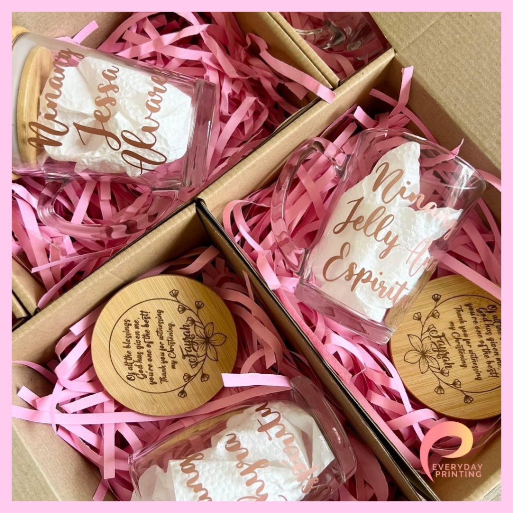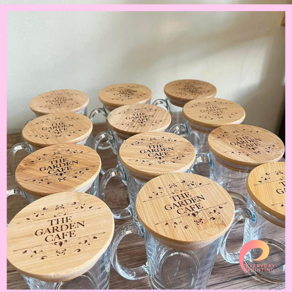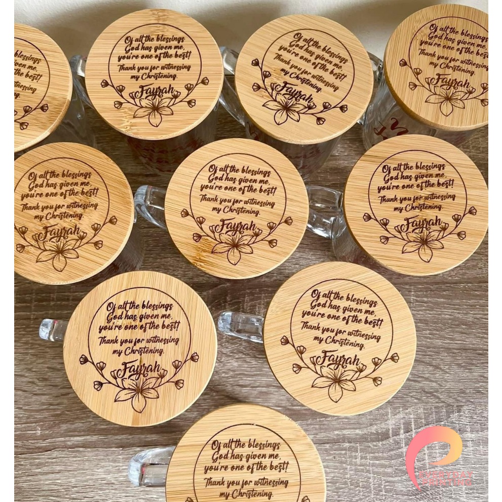 Personalized Clear Glass Mug with Decal Sticker Print and Wooden Bamboo Lid Souvenir Gift