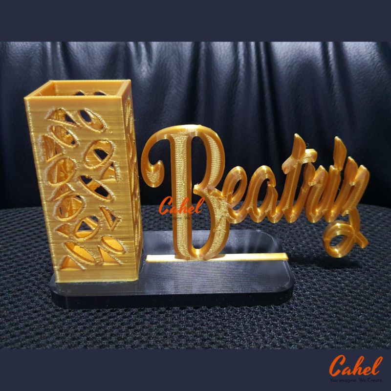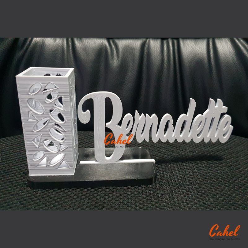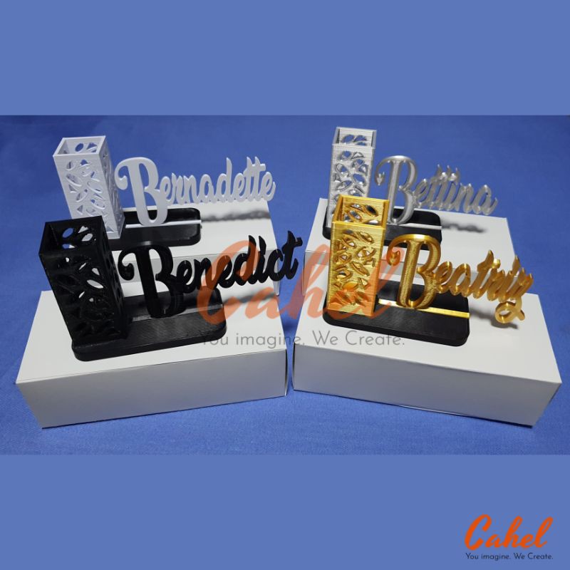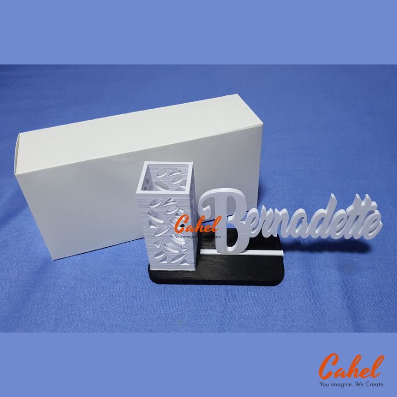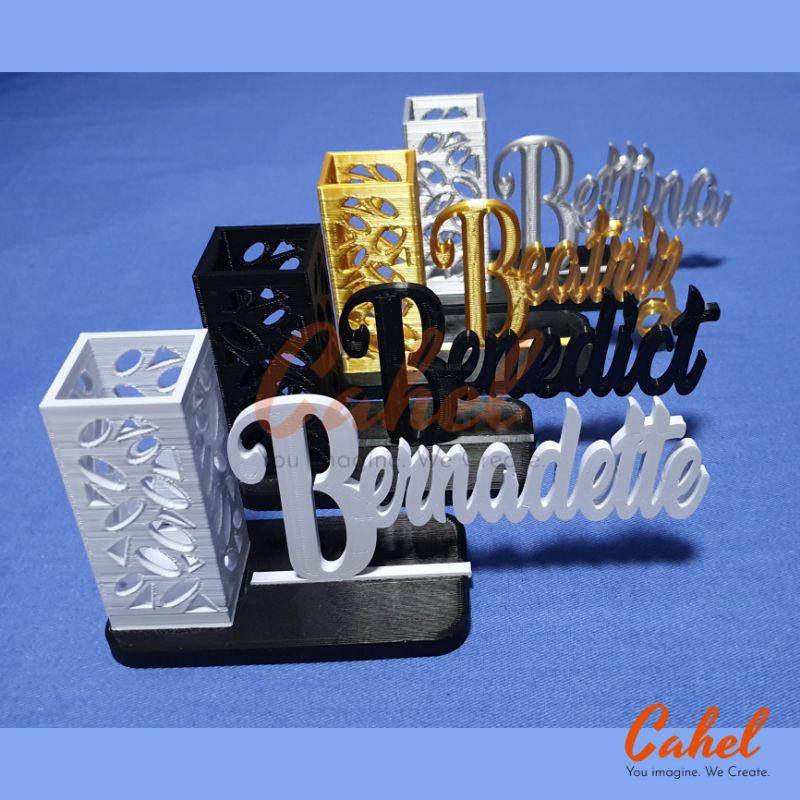 Personalized / Custom Tabletop Name Display with Pen Holder / Desk Name / Name Plate