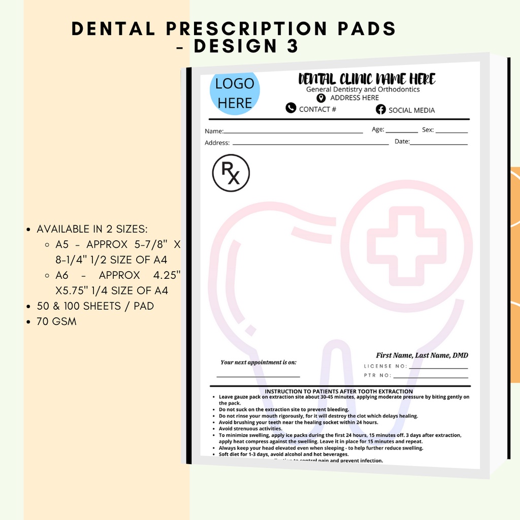 Personalized / Customized Dental Prescription Pad / Notepad in A5 and A6