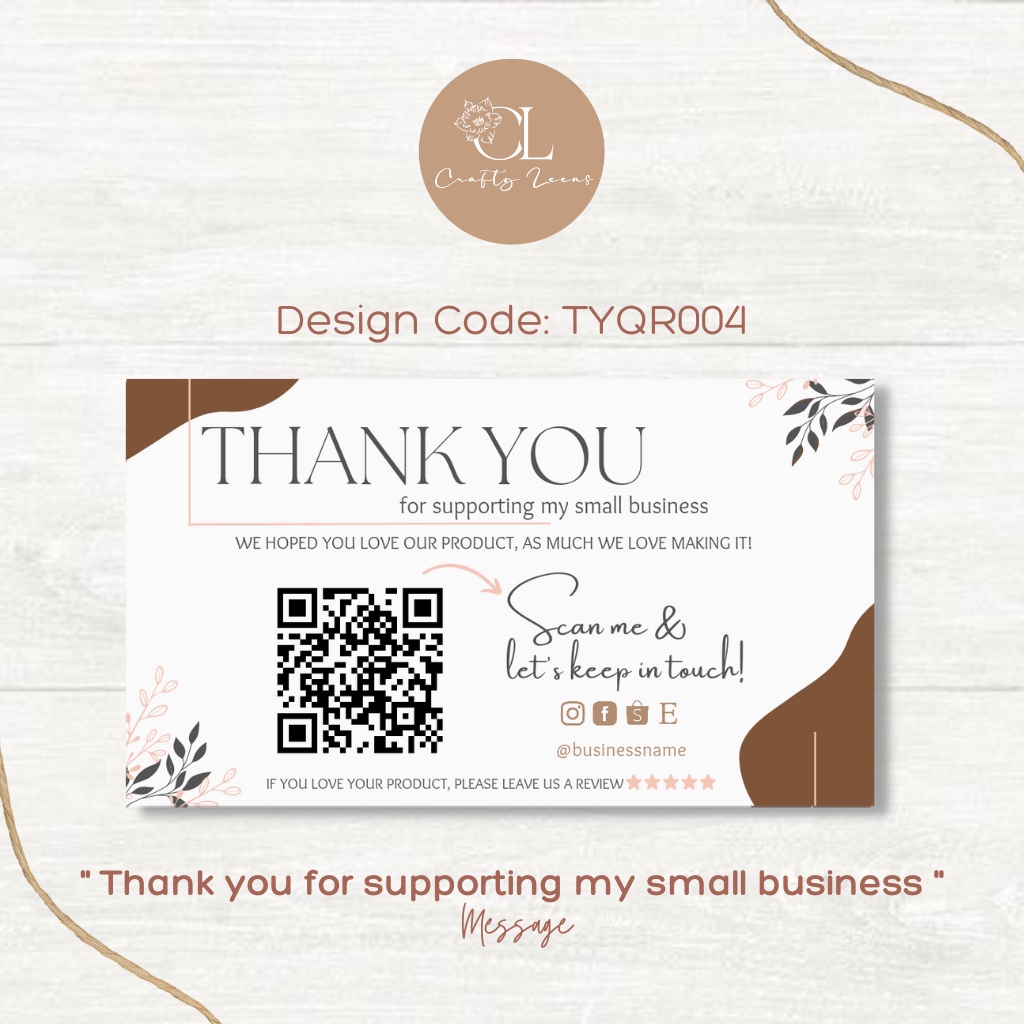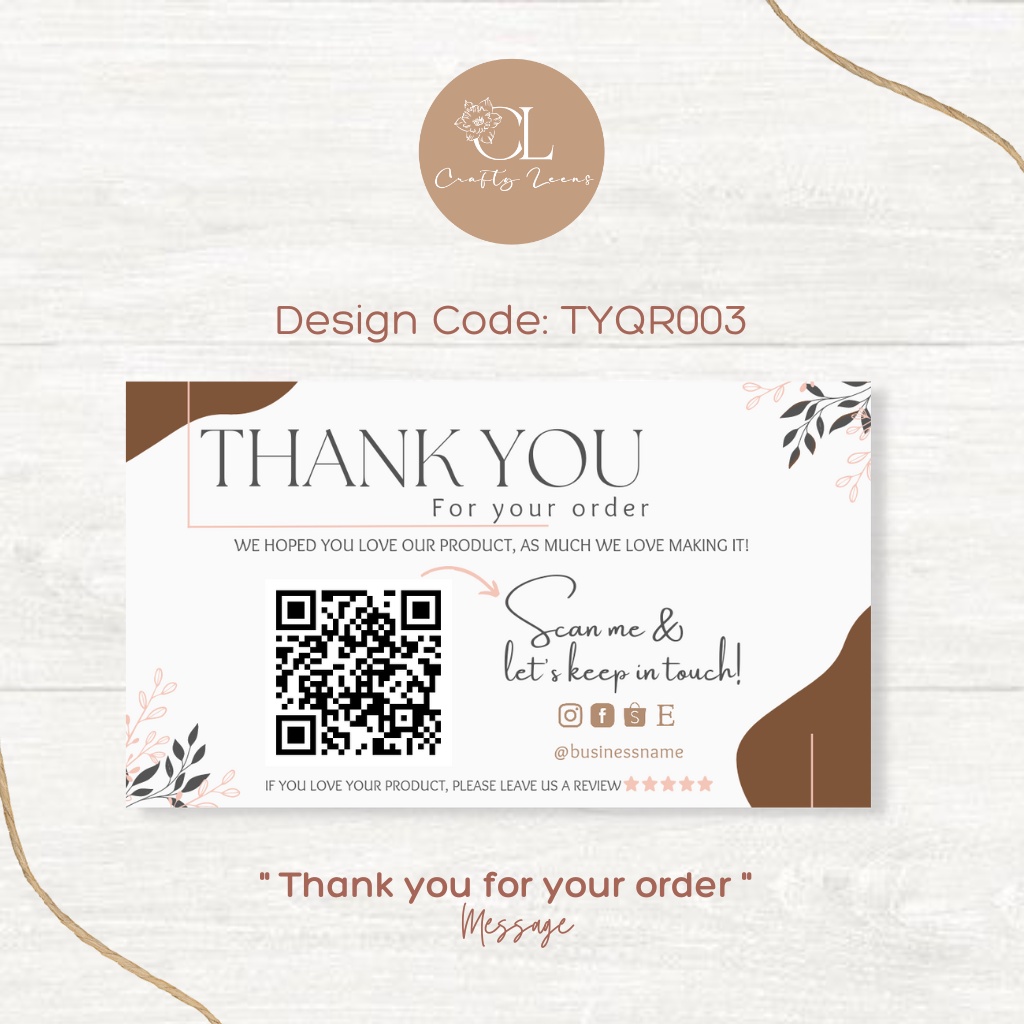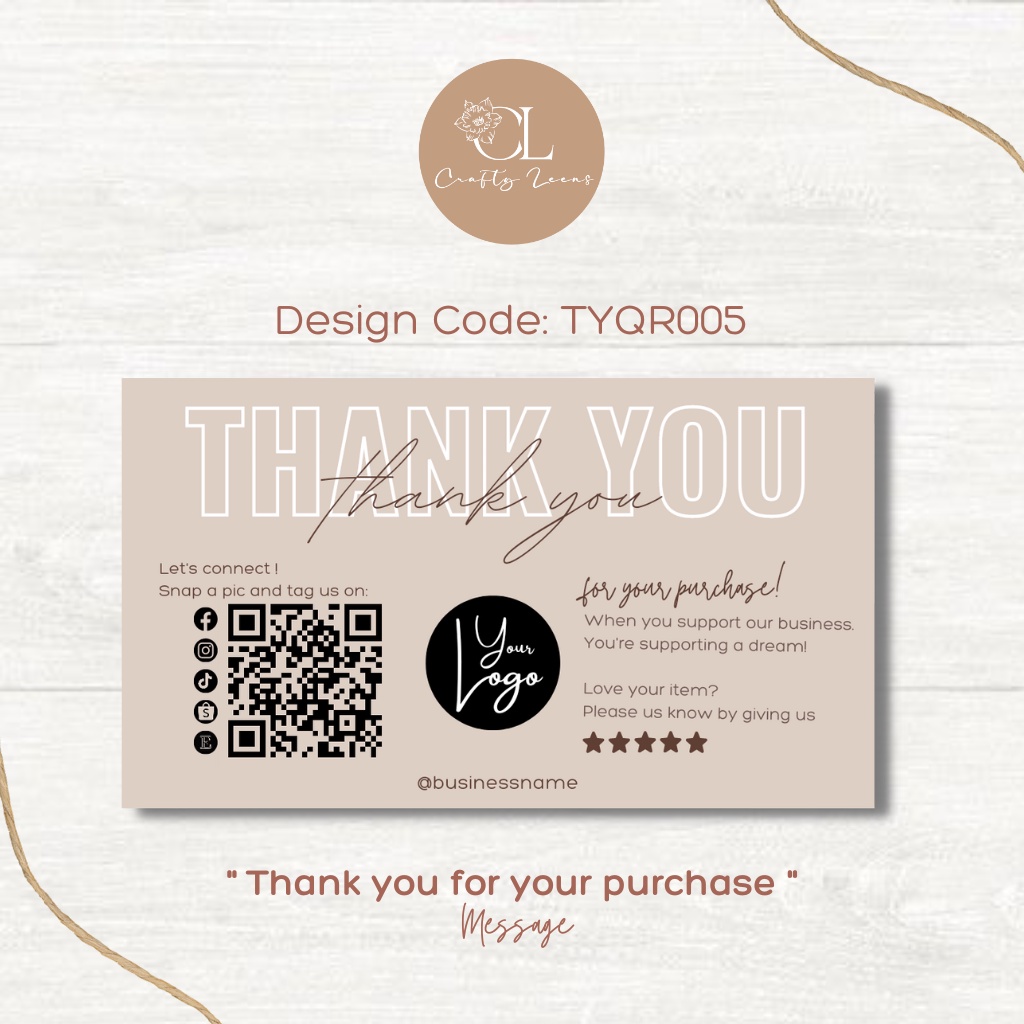 Personalized/Customized Thank You Card for any business with QR Code