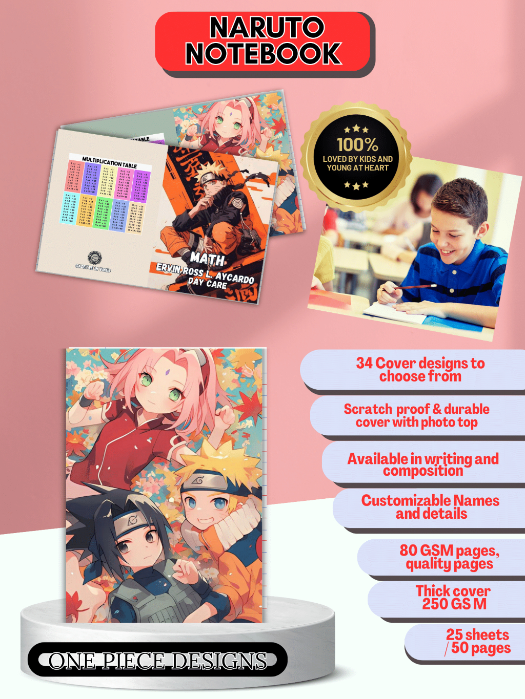 Personalized Customized notebook NARUTO design ( composition / writing ) 50 quality leaves