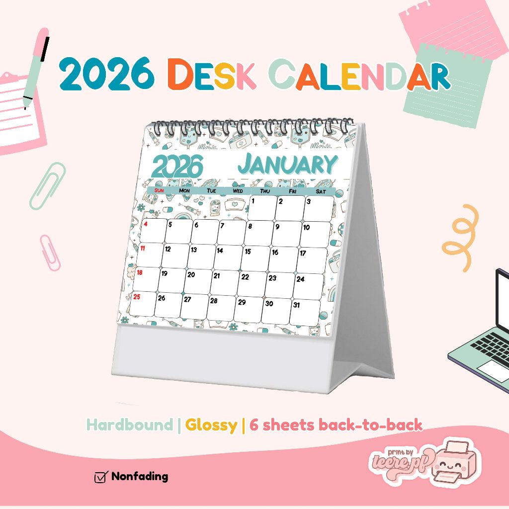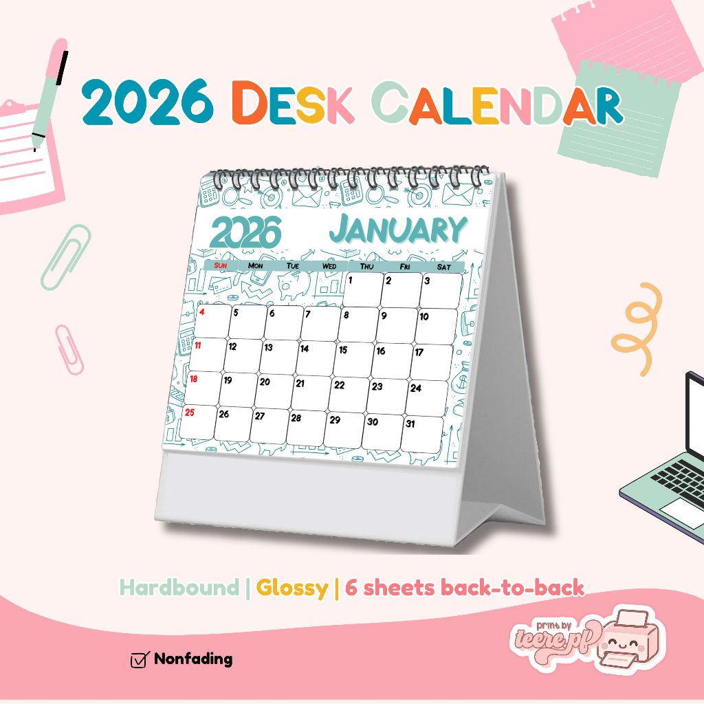 2026 Desk Calendar – Teal Color, Hardbound, Glossy, Non Fading