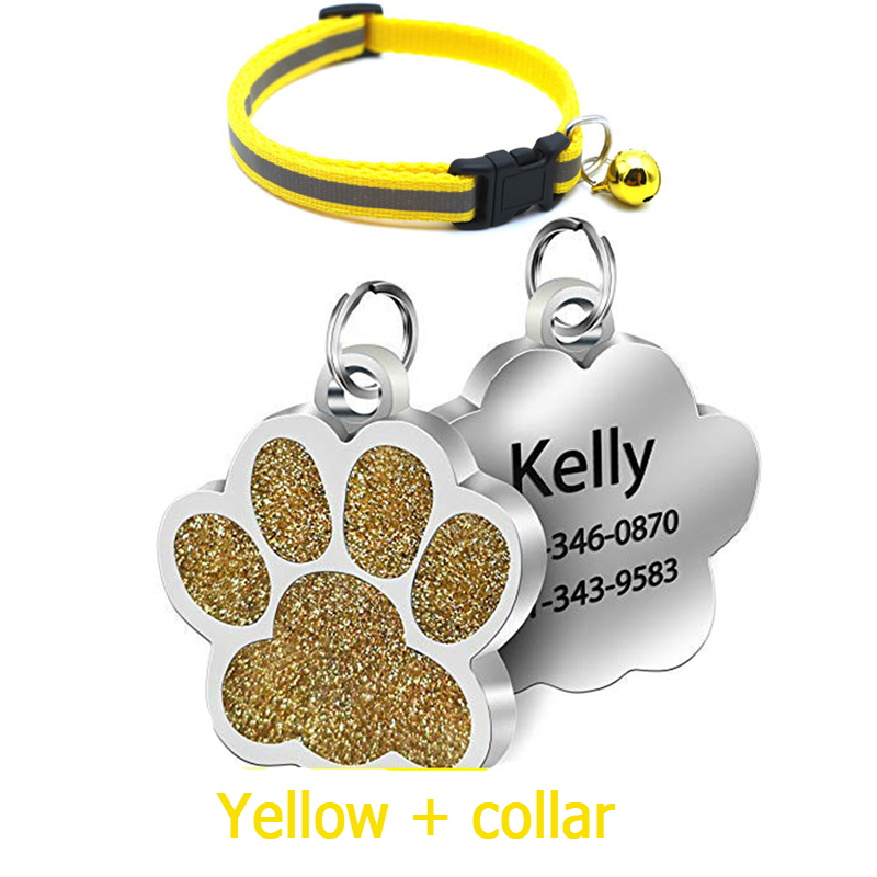 Personalized Dog Cat Tags Engraved Cat Dog Puppy Pet ID Name Collar Tag Pendant Pet Accessories Paw Glitter Pendant